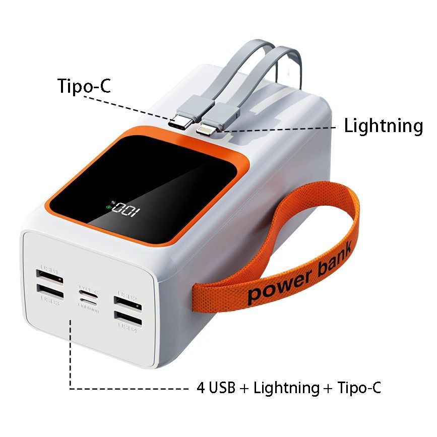 O POWER BANK SUPER POTENTE 22.5W O Power bank Agold 30000mAh com lanterna é um dispositivo portátil de alta capacidade que oferece uma solução de energia conveniente e confiável para os usuários em movimento. Com uma enorme capacidade de 30000mAh, ele pode carregar completamente seu smartphone e outros dispositivos eletrônicos várias vezes antes de precisar ser recarregado. O Power bank apresenta uma lanterna embutida que oferece uma solução conveniente para iluminação em ambientes escuros. A lanterna possui uma luminosidade potente e pode ser facilmente ativada com o pressionar de um botão. O Power bank Agold 30000mAh com lanterna é compatível com uma ampla gama de dispositivos, incluindo smartphones, tablets e outros dispositivos eletrônicos. Ele apresenta múltiplas portas de saída USB, permitindo que vários dispositivos sejam carregados simultaneamente. PARÂMETROS ELÉTRICOS Modelo: BTE-46 Bateria: 30000mAh 111Wh/3.7V Entrada TIPO-C: DC 5V - 3A/9V - 2A/12V - 1.5A (18V) Entrada Lightning: DC 5V - 2.4A/9V - 2A/12V - 1.5A (18W) Saída TIPO-C: DC 5V - 3A/9V - 2.22A/12V - 1,67A (20W) Saída USB1/2/3/ linha Lightning: DC 5V - 2A(10W) Saída USB4: DC 5V - 3A/5V - 4.5A4.5V - 5A/9V - 2A12V - 1.5A (22.5W) Saida de linha TIPO-C: DC 5V - 3A/5V - 4.5A/4.5V - 5A/9V ~ 2A/12V ~ 1.5A (22.5W) INSTRUÇÕES DE USO: Esta bateria portátil é projetada principalmente para carregar dispositivos digitais portáteis. É urna bateria de polímero de íon de lítio com micro USB fêmea para carregar a bateria, USB padrão fêmea e um cabo micro USB macho embutido para carregar. A tensão e a corrente de descarga são constantes, há uma unidade de mini controle [MCU] que controla de maneira inteligente a carga e descarga. Interruptor vibratório embutido, agite apropriadamente para ligar. A bateria embutida está equipada com proteções duplas [hadware e software]. Indicadores de energia de 4 LEDS indicando a energia real. > Compatibilidade universal: qualquer aparelho celular ou outros dispositivos compatíveis com entradas.