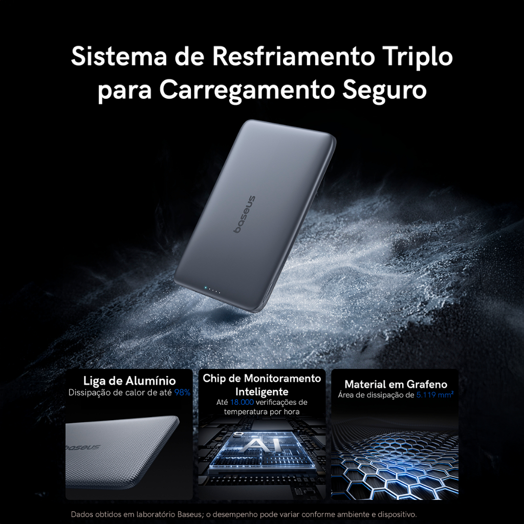 🔋 Power Bank Baseus PicoGo AM41 Qi2 Magnético 5000mAh / 10000mAh 27W Ultra-Fino Compacto, elegante e extremamente potente para o dia a dia. O Baseus PicoGo AM41 está disponível nas versões 5000mAh e 10000mAh, permitindo que você escolha a capacidade ideal para sua rotina. Com carregamento magnético Qi2 de até 15W, saída USB-C de até 27W e design ultrafino de apenas 0,5 polegada, ele entrega energia premium no tamanho de um cartão. Escolha a versão ideal e leve mais praticidade para onde for. ⚡ Carregamento Rápido com e sem Fio Mais liberdade para o seu dia: • Até 15W sem fio (Qi2 magnético compatível com MagSafe) • Até 27W via USB-C (Power Delivery) • Entrada USB-C até 20W para recarga rápida do power bank • Carregamento bidirecional inteligente Ideal para iPhone compatível com MagSafe e dispositivos Android com suporte a carregamento rápido. 🧲 Fixação Magnética Forte e Estável Encaixe preciso e seguro: • Força magnética de 11N • Alinhamento automático • Compatível com case magnética • Mantém fixação firme mesmo durante o uso Praticidade total para usar enquanto carrega. 🔋 Duas Opções de Capacidade: 5000mAh ou 10000mAh Escolha a versão ideal para sua necessidade: 🔹 Versão 5000mAh • Mais leve e ainda mais portátil • Ideal para emergências e uso diário leve • Perfeita para quem busca máxima mobilidade 🔹 Versão 10000mAh • Maior autonomia para viagens e dias intensos • Energia extra por mais tempo • Ideal para quem utiliza o smartphone o dia inteiro Ambas utilizam células de bateria com padrão automotivo, oferecendo maior estabilidade energética e durabilidade. 🛡 Sistema Avançado de Segurança Tecnologia interna pensada para proteção total: • Monitoramento térmico inteligente • Monitoramento de energia 18.000 vezes por hora • Proteção contra sobrecarga • Proteção contra curto-circuito • Proteção contra superaquecimento • Controle térmico eficiente Carregamento seguro e confiável em qualquer situação. 📱 Design Ultra Slim e Premium Minimalista, sofisticado e confortável ao toque: • Espessura aproximada: 0,5 polegada (~12,7mm) • Peso aproximado: ~170g (pode variar conforme versão) • Estrutura em liga de alumínio refinada + silicone macio • Resistente a marcas de dedo • Resistente a riscos • Acabamento premium Cabe no bolso, bolsa ou mochila sem ocupar espaço. 📊 Display Inteligente • Tela digital para acompanhar o nível de bateria • Visualização clara e prática • Controle total da carga restante 📦 Especificações Técnicas Modelo: Baseus PicoGo AM41 Capacidades disponíveis: 5000mAh ou 10000mAh Versão 10000mAh: (3.6V / 36Wh) Versão 5000mAh: (3.6V / 18Wh) Entrada USB-C: 5V⎓3A | 9V⎓2.22A Saída USB-C: 5V⎓2.4A | 9V⎓3A | 12V⎓1.5A (até 27W máx.) Carregamento sem fio: 5W / 7.5W / 15W (Qi2 magnético) Saída total: 5V⎓2.4A Material: Liga de alumínio + silicone Força magnética: 11N Espessura: ~0,5 pol Peso pode variar de acordo com a capacidade escolhida. 📦 Conteúdo da Embalagem • 1 Power Bank Baseus PicoGo AM41 (na capacidade escolhida: 5000mAh ou 10000mAh) • 1 Cabo USB-C para USB-C 30cm • 1 Manual do usuário ✔ Emitimos Nota Fiscal ✔ Garantia de 12 meses ✔ Produto Original, Novo e Lacrado ✔ Envio Imediato para todo o Brasil ✔ Loja Oficial Baseus no Brasil