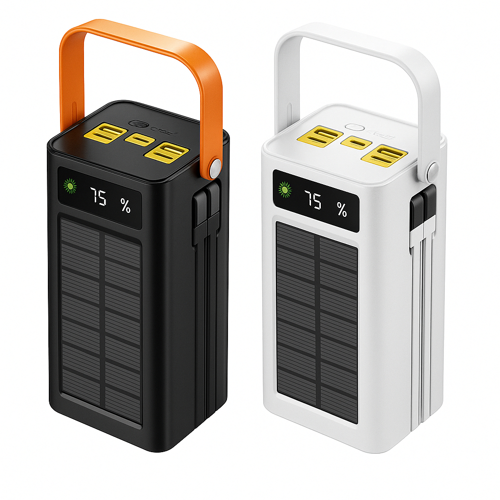 # 🔋 **Power Bank Solar Portátil ANJ.GG – Escolha Sua Capacidade: 20.000mAh ou 50.000mAh** Seja para o dia a dia ou para viagens longas, o **Power Bank Solar ANJ.GG** é a solução definitiva para nunca mais ficar sem bateria. Com design moderno, tecnologia avançada e homologação Anatel, ele está disponível em **duas versões**: **20.000mAh** e **50.000mAh**, para você escolher a que mais combina com sua rotina. --- ## 🌟 **Destaques dos Modelos** ### ⚡ **Versão 20.000mAh – Compacta e Versátil** * Ideal para o dia a dia, trabalho, estudos e pequenas viagens. * Capacidade real que garante várias recargas completas em smartphones. * Mais leve e prática para levar na bolsa ou mochila. ### 🔋 **Versão 50.000mAh – Potência e Autonomia Máxima** * Perfeita para longas viagens, acampamentos e uso intenso. * Energia suficiente para carregar smartphones, tablets e até iPads várias vezes. * Robustez e alta durabilidade com alça reforçada e acabamento premium. --- ## ✅ **Recursos em Comum** * **Carregamento Solar**: painel integrado que aproveita a energia do sol em emergências. * **Até 7 Portas de Carregamento**: compatível com todos os dispositivos (USB, Type-C, Micro e Lightning). * **Cabos Embutidos**: não precisa carregar fios extras. * **Display Digital LED**: mostra a porcentagem exata de carga. * **Homologado pela ANATEL**: garantia de qualidade, segurança e confiabilidade. * **Proteções Integradas**: contra sobrecarga, superaquecimento e curto-circuito. --- ## 📦 **O que vai na caixa** * 1x Power Bank Solar ANJ.GG (20.000mAh ou 50.000mAh – escolha na variação) * 1x Cabo USB extra * 1x Embalagem original homologada pela Anatel * 1x Manual do usuário --- ## ❓ **Perguntas Frequentes (FAQ)** **Qual a diferença entre os modelos?** O de **20.000mAh** é mais compacto e leve, indicado para uso diário. O de **50.000mAh** é maior e oferece muito mais autonomia, ideal para quem precisa de energia por vários dias. **Eles realmente carregam com energia solar?** Sim, o painel solar carrega o power bank sempre que exposto ao sol. Recomendamos usar energia elétrica para cargas completas e deixar o solar como recurso extra ou emergencial. **É compatível com todos os celulares?** Sim! Compatível com **iPhone, Android, tablets, fones, smartwatches e mais**. **É seguro?** Sim, ambos os modelos são **homologados pela Anatel** e possuem múltiplas proteções. --- ## 🚀 **Por que escolher o Power Bank Solar ANJ.GG?** * Opção de **duas capacidades** para diferentes necessidades. * Produto confiável e certificado. * Tecnologia de ponta com praticidade. * Design moderno e funcional. --- ✨ **Escolha sua versão (20.000mAh ou 50.000mAh) e tenha sempre energia disponível onde estiver!**