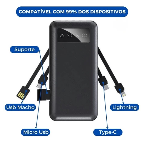 Carregador Power Bank Portátil 20000mah Universal Saida 4 Cabos_LUIZA