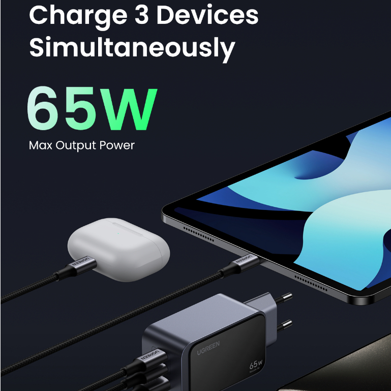 Carregador Rápido UGREEN GaN 65W 30W USB C A Novo Nexode Air Series 3 Portas Para iPhone 15/15 Pro Max/Macbook/iPad Mini