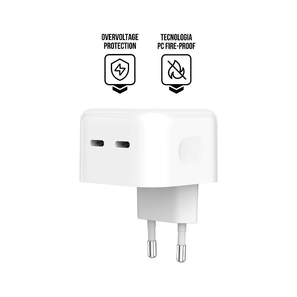 1) O Carregador de Parede Turbo com 2 Entradas Tipo C da Gshield é a solução definitiva para todas as suas necessidades de carregamento de dispositivos. Ele é um carregador de parede inteligente, que combina velocidade, segurança e versatilidade em um design elegante e compacto. Com duas entradas Tipo C, o carregador permite carregar dois dispositivos simultaneamente, proporcionando uma solução conveniente para famílias ou profissionais em movimento. A tecnologia Turbo integrada garante uma carga rápida e eficiente, permitindo que você recarregue seus dispositivos até 3 vezes mais rápido do que os carregadores convencionais. Projetado com materiais de alta qualidade e construção robusta, o Carregador de Parede Turbo da Gshield oferece proteção contra sobrecarga, sobrecorrente, sobretensão e superaquecimento, garantindo a segurança dos seus dispositivos durante todo o processo de carregamento. Seu design compacto e elegante facilita o transporte, sendo ideal para uso em casa, no escritório ou em viagens. Compatível com uma ampla gama de dispositivos eletrônicos, desde smartphones e tablets até notebooks e consoles de jogos, o carregador é a escolha perfeita para manter todos os seus dispositivos carregados e prontos para uso, a qualquer momento e em qualquer lugar. Com o Carregador de Parede Turbo da Gshield, você pode desfrutar de um carregamento rápido, seguro e eficiente, mantendo-se conectado ao mundo ao seu redor, sem interrupções. Confie na qualidade e desempenho incomparáveis da marca Gshield para todas as suas necessidades de carregamento de dispositivos. 2) O Cabo Thunder 2 em 1, da Gshield, combina versatilidade, potência e conveniência para atender a todas as suas demandas tecnológicas. Esse cabo versátil foi projetado para oferecer conveniência e desempenho excepcionais em um único produto, afim de garantir que você tenha todas as funcionalidades necessárias ao seu alcance! Compatibilidade e Adaptabilidade Além dos conectores Tipo C, o Cabo Thunder 2 em 1 também possui um adaptador integrado da porta USB padrão, garantindo compatibilidade com uma ampla gama de dispositivos. Carregamento até 65W Com uma potência de 65W, o cabo Thunder permite um carregamento rápido e eficiente para todos os seus dispositivos compatíveis com USB Tipo C. Diga adeus à espera demorada e obtenha energia em tempo recorde. Transferência de Dados Além do carregamento rápido, o Cabo Thunder 2 em 1 oferece transferência de dados em alta velocidade. Isso possibilita mover arquivos, fotos e vídeos entre dispositivos com facilidade e rapidez. Alta Qualidade O cabo é construído com materiais de alta qualidade, possui revestimento em malha reforçada que oferece durabilidade excepcional e um desempenho confiável. Seus conectores são robustos e projetados para resistir à corrosão, e o próprio cabo é revestido para suportar o desgaste, proporcionando uma longa vida útil. Sua versatilidade, velocidade e confiabilidade tornam-no um acessório indispensável para quem valoriza eficiência e alto desempenho. Simplifique sua vida digital com o Cabo Thunder 2 em 1! ESPECIFICAÇÕES Carregador Marca: Gshield Carregamento: Qualcomm 3.0 Cor: Branco Entrada: AC 100 240V 50/60Hz 0,7A (9V) Output USB-C: (PDO)5,0V3A ou 9,0V2,77A (PPS)3,3-5,9V3,0A ou 3,3-11V2,25A Potência Máxima Usando Uma Porta: 35W USB C1 ou C2 : 5V=3A; 9V=3A; 15V=2.33A; 20V=1.75A Potência Máxima Usando Duas Portas: 17,5W em cada uma USB C1 e C2: 5V=2.4A;9V=1.94A;15V=1.16A;20V=0.87A Certificação: ANATEL Cabo Marca: Gshield Material: Revestimento em malha reforçada Cor: Branco Diâmetro: 4,5 mm Tamanho: 1m Entrada 2 em 1: USB-A para Tipo C | Tipo C para Ligthning Potência de carregamento: 65W COMPATIBILIDADE Cabo Thunder 65W 2 em 1 Lightning - 1M ITENS INCLUSOS 1x Carregador 2x Cabo