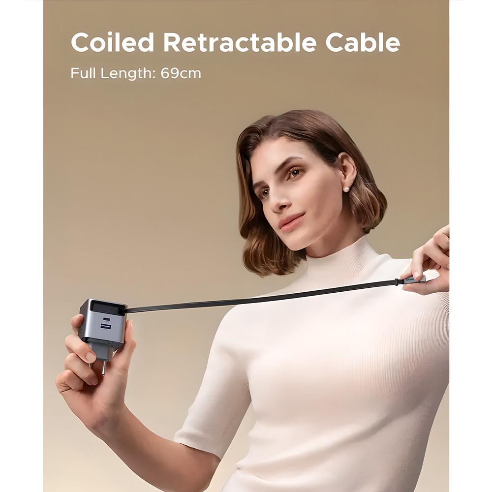 Carregador UGREEN GaN 100W Porta USB-A/C Cabo USB-C Retrátil