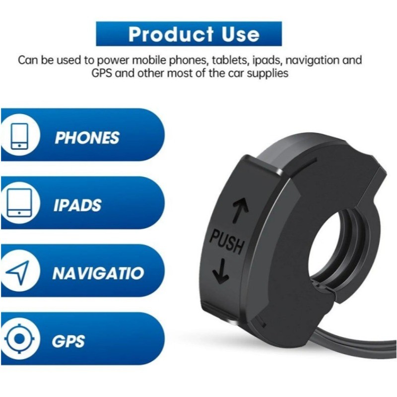 ESPECIFICAÇÕES DO PRODUTO: Parts Entrada: DC 12V - 24V (Compatível com motos, carros, SUVs, barcos, quadriciclos, bicicletas elétricas, etc.) Saída: USB-A: 5V-3.4A / 9V-2.5A / 12V-1.5A (18W) Tipo-C (PD): 5V-3A / 9V-3A / 12V-2.5A (30W) Potência total: 48W (Ultra Rápido) Instalação: Montagem no guidão — fácil, rápida e segura Material: ABS ultra resistente, anti-impacto e anti-risco COMPATIBILIDADE: Celulares (Compatível com 99% das marcas e modelos de celulares disponíveis no mercado..)Tablets, iPads, GPS, navegadores, câmeras, GoPro, caixas de som, e muito mais! MÁXIMA SEGURANÇA: Proteção contra sobretensão Proteção contra subtensão Proteção contra sobrecorrente e sobrecarga Proteção contra curto-circuito Proteção contra aquecimento Proteção contra conexão reversa PRINCIPAIS VANTAGENS: Super Carregamento Rápido: Porta USB-C (30W) + USB-A (18W). Carregue dois dispositivos juntos sem perda de velocidade! Desligamento Inteligente: Liga automaticamente ao conectar e desliga ao retirar o aparelho ou quando atinge carga completa. Economiza bateria! Resistente e Durável: Design robusto, ideal para qualquer clima — à prova d'água e de poeira. Perfeito para Viagens: Leve, compacto e fácil de instalar. Instalação Simples: Montagem rápida no guidão, sem complicações.