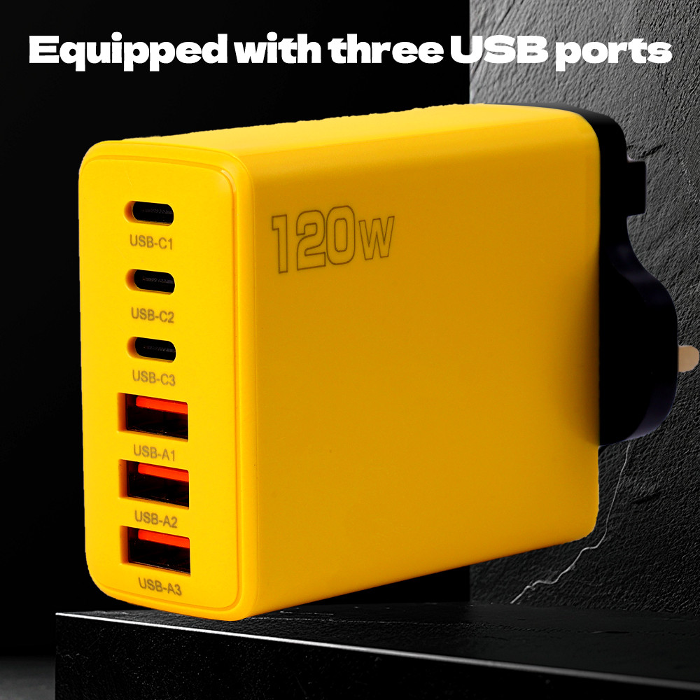 Carregador USB-C De 6 Portas De 120 W-Conjunto De Carregamento De Viagem Ue Eua Reino Unido-Adaptador De Parede Para Cel