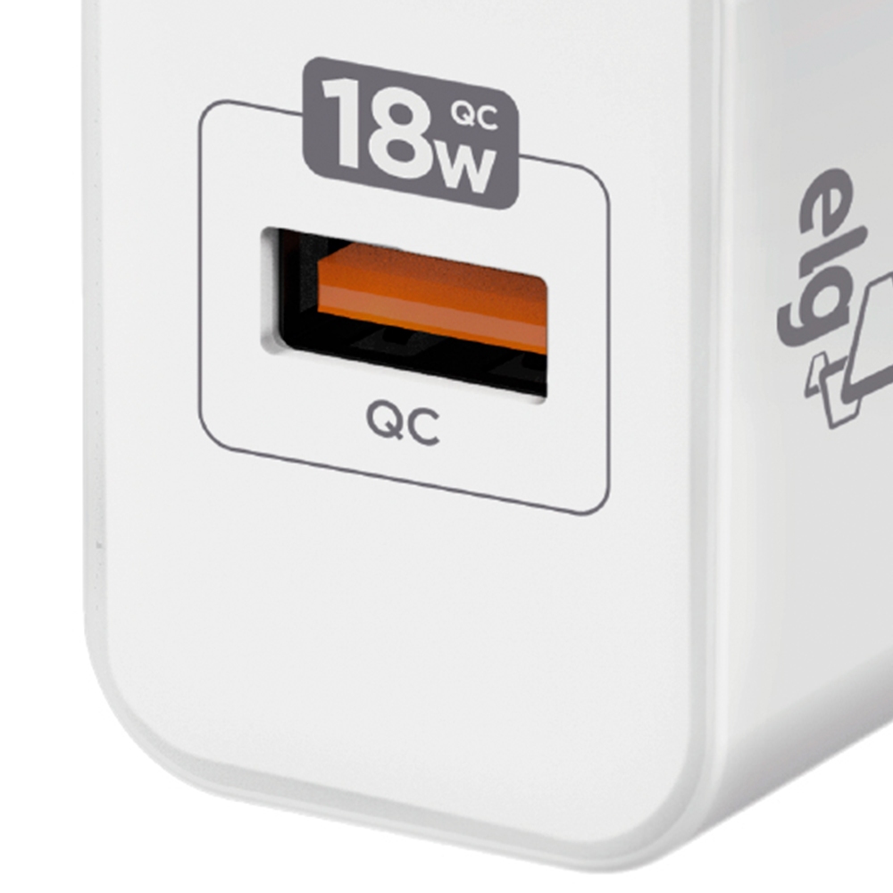 Carregador USB Universal, 1 Porta USB-A Quick Charge 3.0 18W, Carga Rápida, Branco, WC1S-QC3, ELG