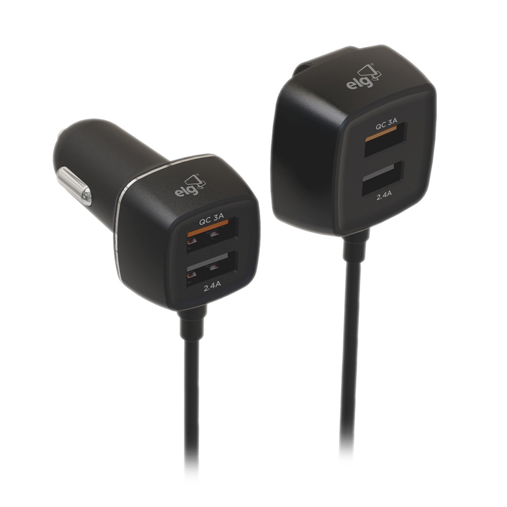 Carregador Veicular C/Extensor 4 Portas USB-A Quick Charge 3.0 + 2.4A 60W Cabo 1.5m Preto CC4SQC ELG
