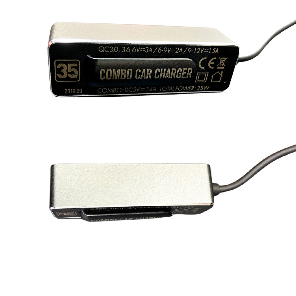 Entrada: DC 12-24V Saida : 1 porta Turbo(QC3.0) 18w 3 porta Normal DC 5V 3.4A (MAX) Potência total 35W Comprimento do cabo 120cm Itens Inclusos: 01x carregador