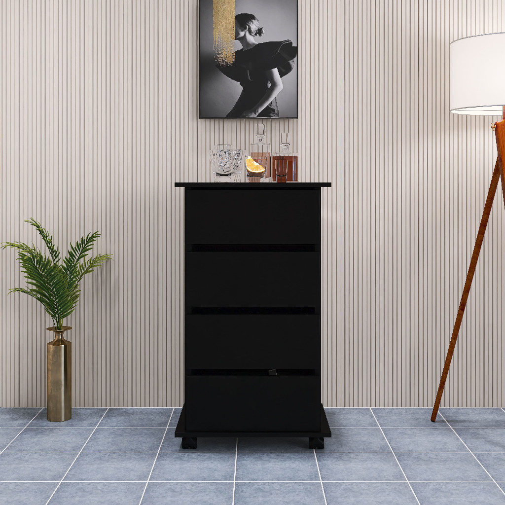 Carrinho Auxiliar Gaveteiro Criado 4 Gavetas Cores Branco/Preto