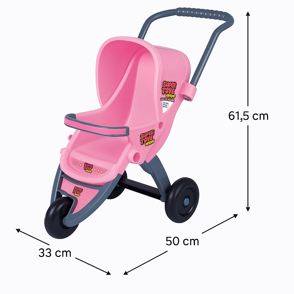 Descrição do produto 🍼 Carrinho de Boneca Infantil 3 Rodas Rosa – Super Toys A HM KIDS Brinquedos tem a missão de garantir a satisfação total de seus clientes, oferecendo produtos de qualidade e um atendimento que gera confiança. Estamos sempre à disposição para tirar qualquer dúvida! O Carrinho de Boneca 3 Rodas Rosa Super Toys é perfeito para crianças que amam brincar de boneca. Com design moderno, ele acomoda até bonecas grandes, como bebês reborn, e torna a brincadeira muito mais divertida e realista. Brincar de boneca é mais do que diversão: é um momento de aprendizado, que estimula o senso de cuidado, responsabilidade e vínculos afetivos. ✨ Benefícios do Carrinho de Boneca 3 Rodas Rosa 🚼 Cabe bonecas grandes (incluindo bebês reborn) 💪 Material resistente e durável ☀️ Ideal para brincar dentro de casa e ao ar livre 👧 Estimula imaginação, vínculos e senso de responsabilidade 🎁 Presente perfeito para meninas e meninos 📏 Medidas do Produto Altura: 61,5 cm Comprimento: 50 cm Largura: 33 cm 📦 Conteúdo da Embalagem: 1 unidade do Carrinho 3 Rodas na cor Rosa (Não acompanha bebê conforto ou boneca) 🔍 Informações Técnicas Produto: Carrinho de Boneca Infantil 3 Rodas Rosa Marca: Super Toys Tipo: Brinquedo Infantil Idade Recomendada: A partir de 3 anos Apresentação: Caixa de papelão Gênero: Unissex ⚠️ Precauções Não indicado para menores de 3 anos. Este produto não substitui mordedor. Sempre utilize sob supervisão de um adulto. ❓ Perguntas Frequentes O que fazer se meu filho(a) colocar o carrinho na boca? O produto é feito em plástico resistente e não prejudica a saúde da criança, mas não é recomendado como mordedor. Caso isso ocorra, recomendamos a limpeza imediata da boca da criança. Qual a idade recomendada? Indicado para crianças a partir de 3 anos. ✅ Por que comprar com a HM KIDS Brinquedos? 🚚 Envio imediato pela transportadora Shopee 🇧🇷 Produto nacional com qualidade garantida 💬 Suporte rápido no chat para tirar todas as suas dúvida Tags________________________ carrinho de boneca, carrinho de boneca rosa, carrinho 3 rodas, carrinho boneca super toys, carrinho bebê reborn, carrinho de boneca infantil, brinquedo de menina, brinquedo educativo, brinquedo infantil, presente menina, presente infantil, brinquedo de faz de conta, carrinho resistente para boneca, brinquedo até 8 anos, brinquedo nacional