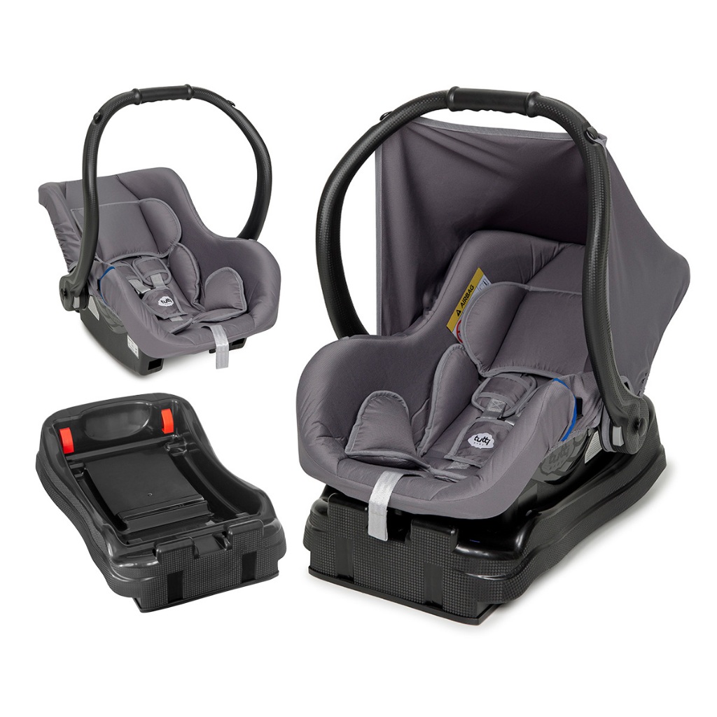 Carrinho Berço de Bebê 0 a 15kg Joy II Cinza e Bebê Conforto Ello + Base Tutti Baby