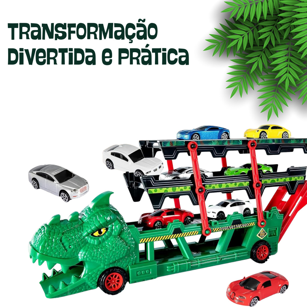 Carrinho Caminhão Carreta Cegonha Leva Carros Dinossauro Com Carrinhos Com Pista Infantil Kizumba