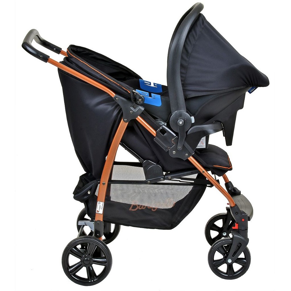 Carrinho com Bebe Conforto Base Burigotto Ecco Preto Bronze