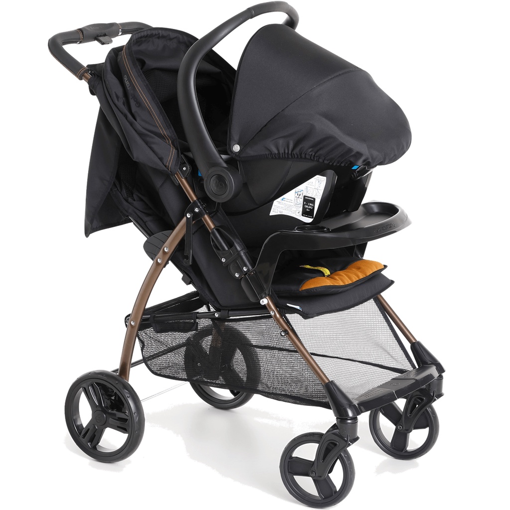Carrinho com Bebe Conforto Base Galzerano San Remo Preto Cobre
