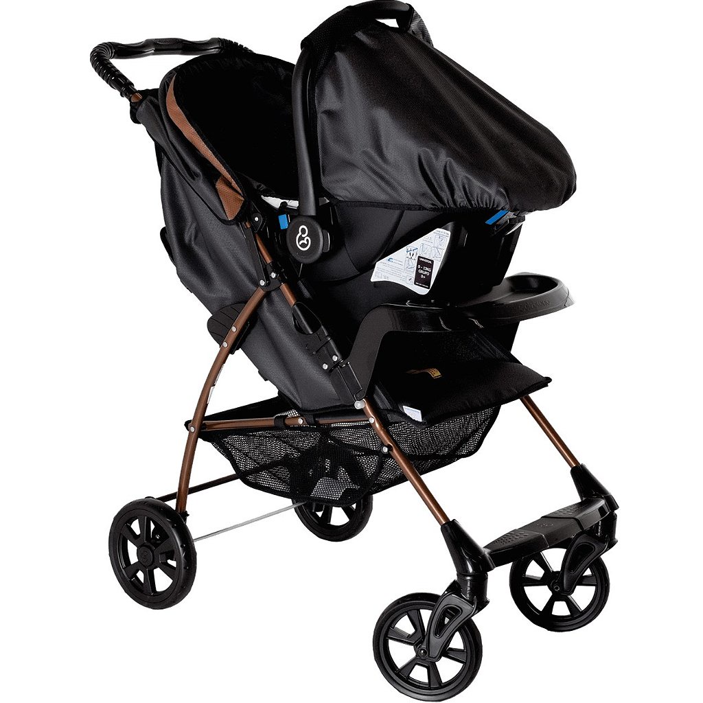 Carrinho com Bebe Conforto e Base Galzerano Romano Preto Cobre