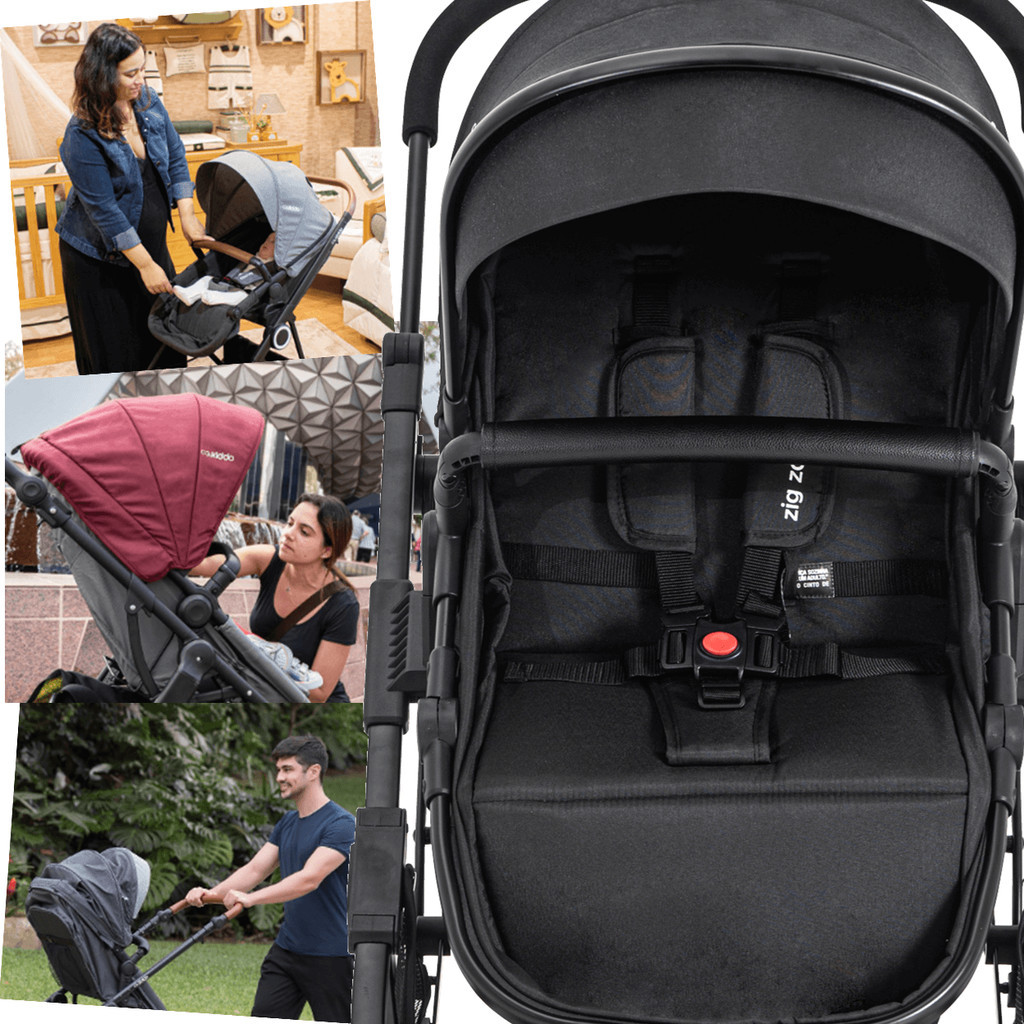 Carrinho de Bebe com Bebe Conforto Base Kiddo Zig Zag Preto