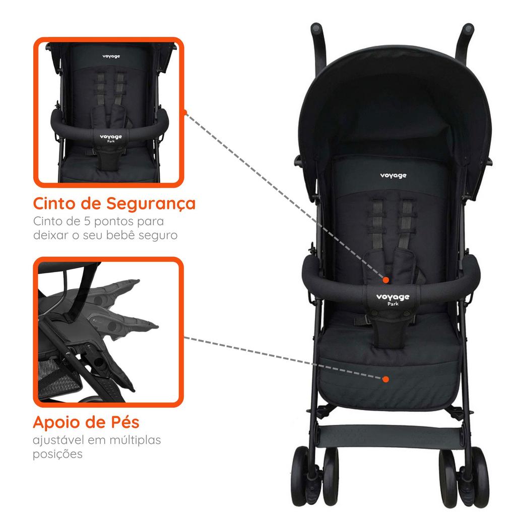 Carrinho de Bebê Guarda Chuva Park Preto 0-15kg Voyage