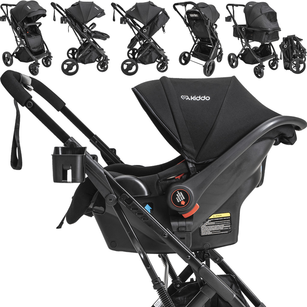 Carrinho de Bebe Kiddo Vox II com Bebe Conforto e Base Preto
