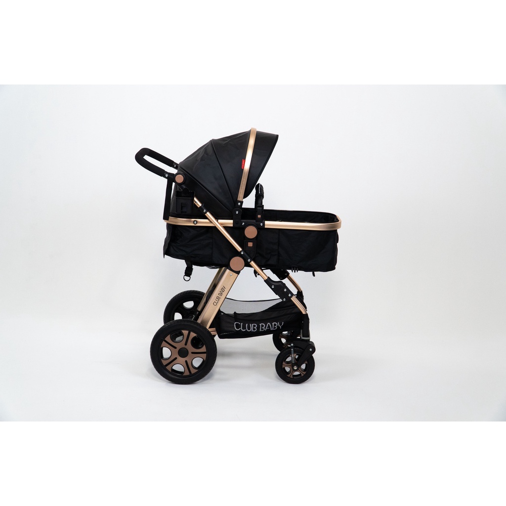 Carrinho de Bebê Luxo Club Baby Preto C/ Alça e Selo Inmetro