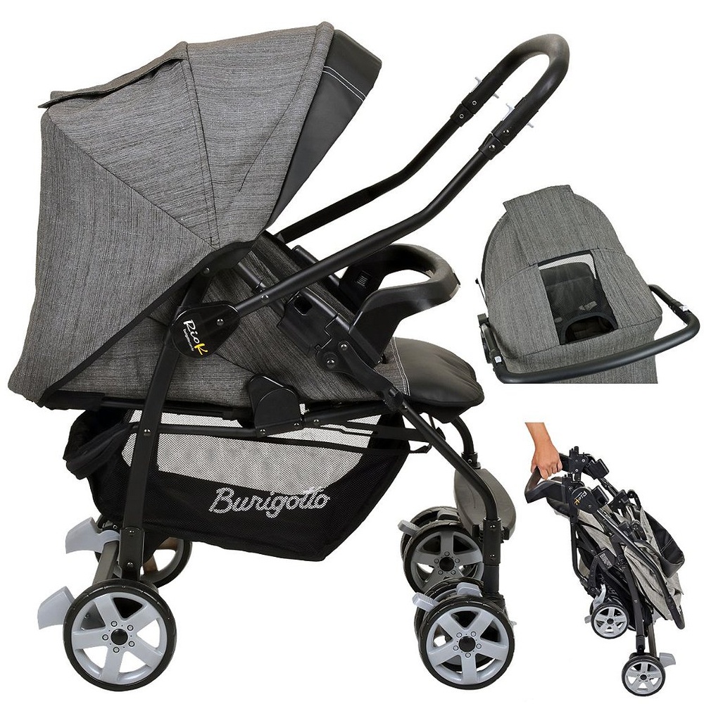 Carrinho de Bebe Reversivel Burigotto Rio K Mesclado Preto