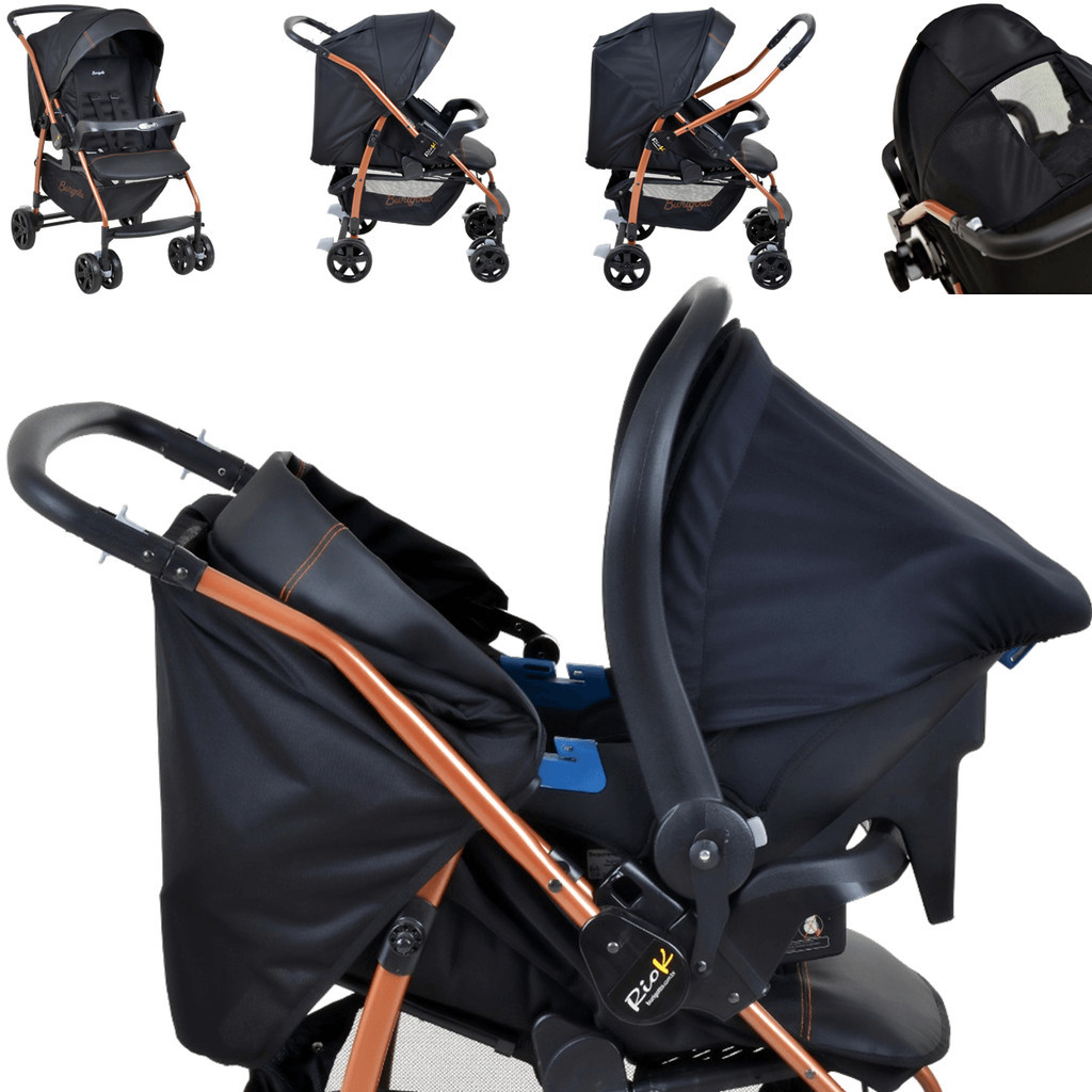 Carrinho De Bebê Rio K + Bebê Conforto Preto Cobre Burigotto
