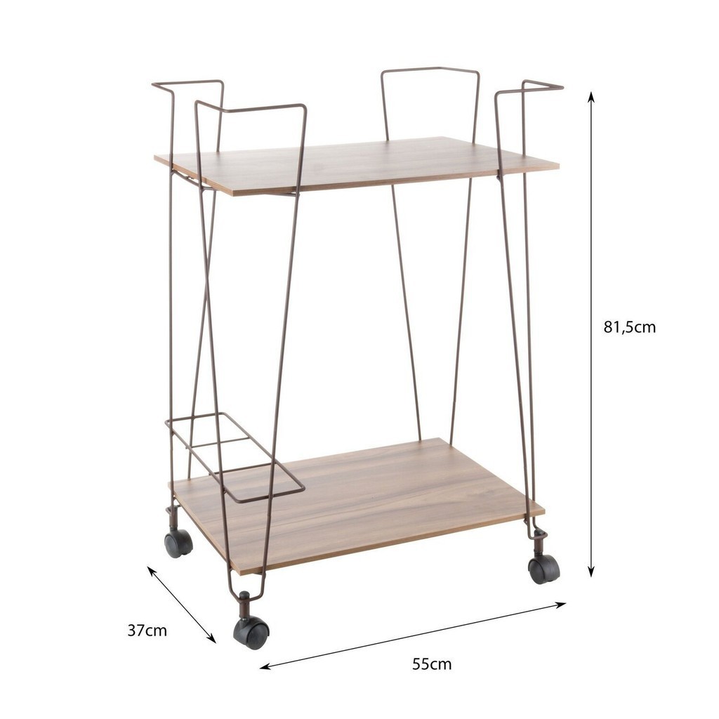 Carrinho de bebidas decorativo retangular com 2 andares e rodinhas, multiuso com estilo industrial com lateral em aço e prateleiras de madeira em MDP para sala de estar, sala de jantar, bares e adegas. Bandeja: Não Peso (kg): 5.96 Garantia: 36 Meses Altura (cm): 81.5 Acabamento: Pintura Largura (cm): 55 Possui Pés: Sim Porta Taças: Não Possui Adega: Não Possui Vidro: Não Possui Portas: Não Altura dos Pés: 4 Pés Reguláveis: Não Porta-Garrafas: Não Porta-Talheres: Não Possui Gavetas: Não Possui Rodízio: Sim Suporta Até (kg): 10 Possui Espelhos: Não Profundidade (cm): 37 Escala de Brilho: Fosco Material dos Pés: Polipropileno Origem do Produto: Nacional Possui Iluminação: Não Rodízio com Trava: Não Acabamento dos Pés: Polipropileno Ambiente Principal: Sala de Jantar Material Principal: Aço Sapatas Niveladoras: Não Material da Prateleira: MDP Porta Rolhas/Tampinhas: Não Acabamento da Prateleira: Melamínico Peso Máximo por Prateleira: 5 Escala de Brilho da Prateleira: Semi-Brilho Marca: Metaltru Cor do Produto: Aço Corten/Castanho Itens Inclusos: 1 Carrinho e manual de montagem Cor Predominante: Marrom Quantidade de Gavetas: Não Possui