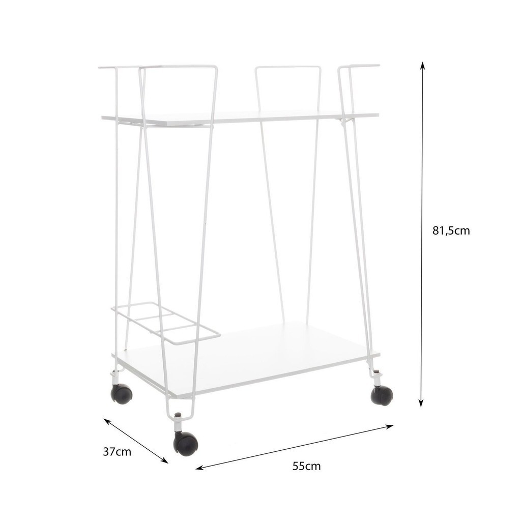 Carrinho de bebidas decorativo retangular com 2 andares e rodinhas, multiuso com estilo industrial com lateral em aço e prateleiras de madeira em MDP para sala de estar, sala de jantar, bares e adegas. Bandeja: Não Peso (kg): 5.96 Garantia: 36 Meses Altura (cm): 81.5 Acabamento: Pintura Largura (cm): 55 Possui Pés: Sim Porta Taças: Não Possui Adega: Não Possui Vidro: Não Possui Portas: Não Altura dos Pés: 4 Pés Reguláveis: Não Porta-Garrafas: Não Porta-Talheres: Não Possui Gavetas: Não Possui Rodízio: Sim Suporta Até (kg): 10 Possui Espelhos: Não Profundidade (cm): 37 Escala de Brilho: Fosco Material dos Pés: Polipropileno Origem do Produto: Nacional Possui Iluminação: Não Rodízio com Trava: Não Acabamento dos Pés: Polipropileno Ambiente Principal: Sala de Jantar Material Principal: Aço Sapatas Niveladoras: Não Material da Prateleira: MDP Porta Rolhas/Tampinhas: Não Acabamento da Prateleira: Melamínico Peso Máximo por Prateleira: 5 Escala de Brilho da Prateleira: Semi-Brilho Marca: Metaltru Cor do Produto: Branco Itens Inclusos: 1 Carrinho, Manual de montagem e Kit de ferragens Cor Predominante: Branco Quantidade de Gavetas: Não Possui