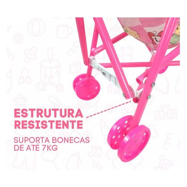 >>ENVIO EM ATÉ 24 HORAS<< Carrinho De Boneca De Plástico O carrinho de boneca une a beleza do produto, a qualidade e um preço super acessível Confeccionado em tubo de ferro resistente e leve, pintura eletrostática que aumenta a durabilidade do produto e tecido de ótima qualidade com costura industrial. Esse é o brinquedo perfeito para dar para a sua filha, ou de presente Atenção carrinho de boneca cor de rosa, estampas de tecido sortidas ESPECIFICAÇÕES: Dobrável: sim Medidas montado: 49 x 22 x 37 cm (a x l x c) Composição/ material: Plástico PP e Tecido. Produto certificado pelo INMETRO OBSERVAÇÃO: CARRINHO NÃO ACOMPANHA BONECA
