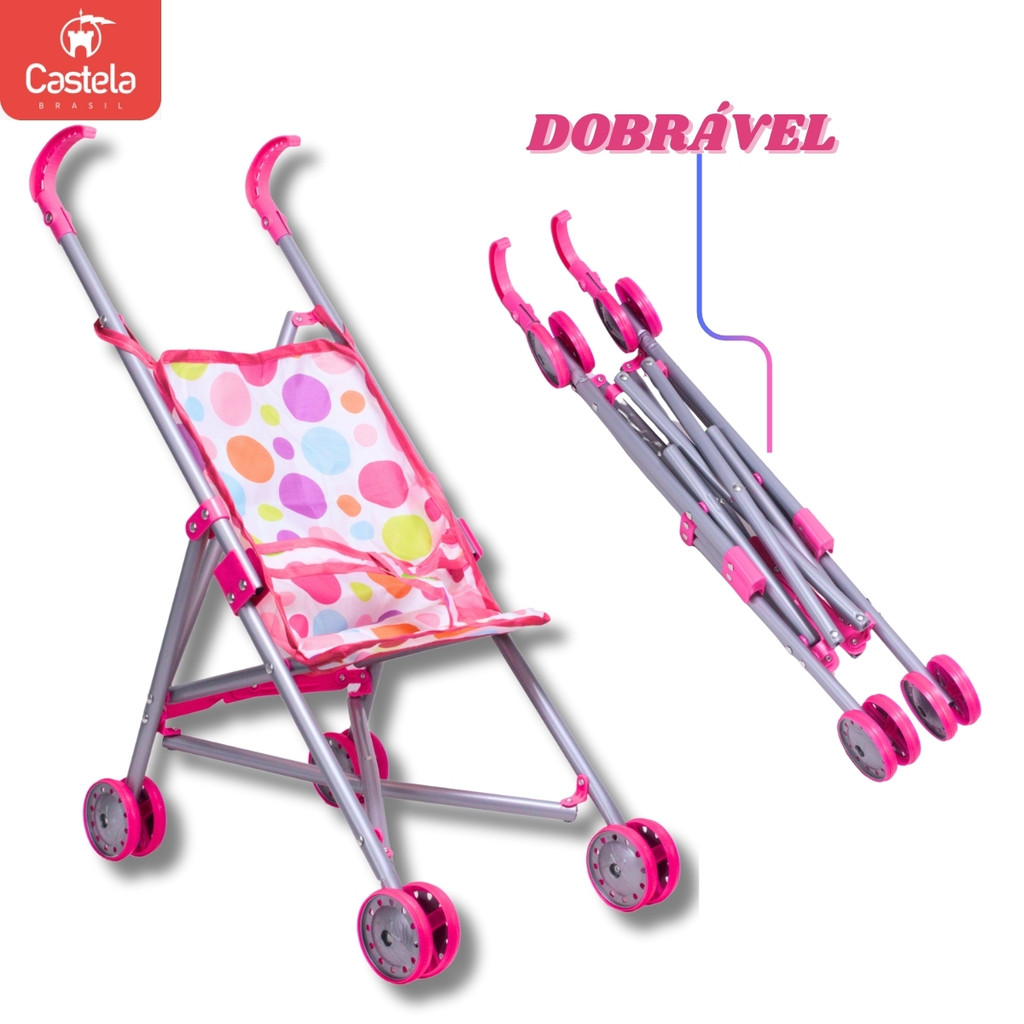 Carrinho de Boneca De Bolinhas Coloridas em Tecido - Castela