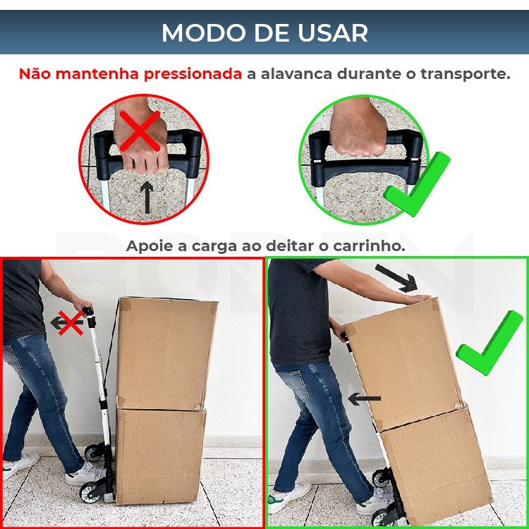O carrinho de carga dobrável Boden é a ferramenta perfeita para facilitar suas mudanças, transportes de caixas, viagens ou feiras. Com um design ergonômico, suas hastes leves e resistentes proporcionam mais conforto e segurança durante o transporte de objetos pesados. Sua base de alumínio antiderrapante garante estabilidade e firmeza, evitando que suas caixas escorreguem durante o trajeto. Além disso, a estrutura com múltiplas fixações permite que você ajuste o carrinho de carga de acordo com suas necessidades, tornando-o ainda mais versátil e adaptável a diferentes tipos de objetos. Com as alças telescópicas que se estendem até 1 metro e as rodas de borracha com rolamento de 12cm de diâmetro, você pode transportar até 75kg de uma só vez. ESPECIFICAÇÕES: - Dimensões Fechado: 39cm x 63cm x 5cm - Dimensões Aberto: 39cm x 100cm x 41cm - Peso: 3,20kg - Capacidade: 75kg - Material: Alumínio VOCÊ RECEBERÁ: 01 Carrinho de carga dobrável 01 Manual de instruções 01 Nota Fiscal Eletrônica 01 Corda de Elástico com Ganchos ENVIO: Temos os carrinhos dobráveis em estoque a pronta entrega! Compras feitas até às 12:00 serão enviadas no mesmo dia. Compras efetuadas na sexta-feira após horário comercial, sábado ou domingo serão postadas na segunda-feira. GARANTIA: Os carrinhos dobráveis de carga da Boden são testados e possuem garantia de 3 meses. Com sua praticidade, qualidade e durabilidade, você terá a certeza de estar fazendo um excelente investimento. Adquira já o seu carrinho dobrável Boden e tenha a tranquilidade de transportar seus objetos pesados com praticidade e segurança!