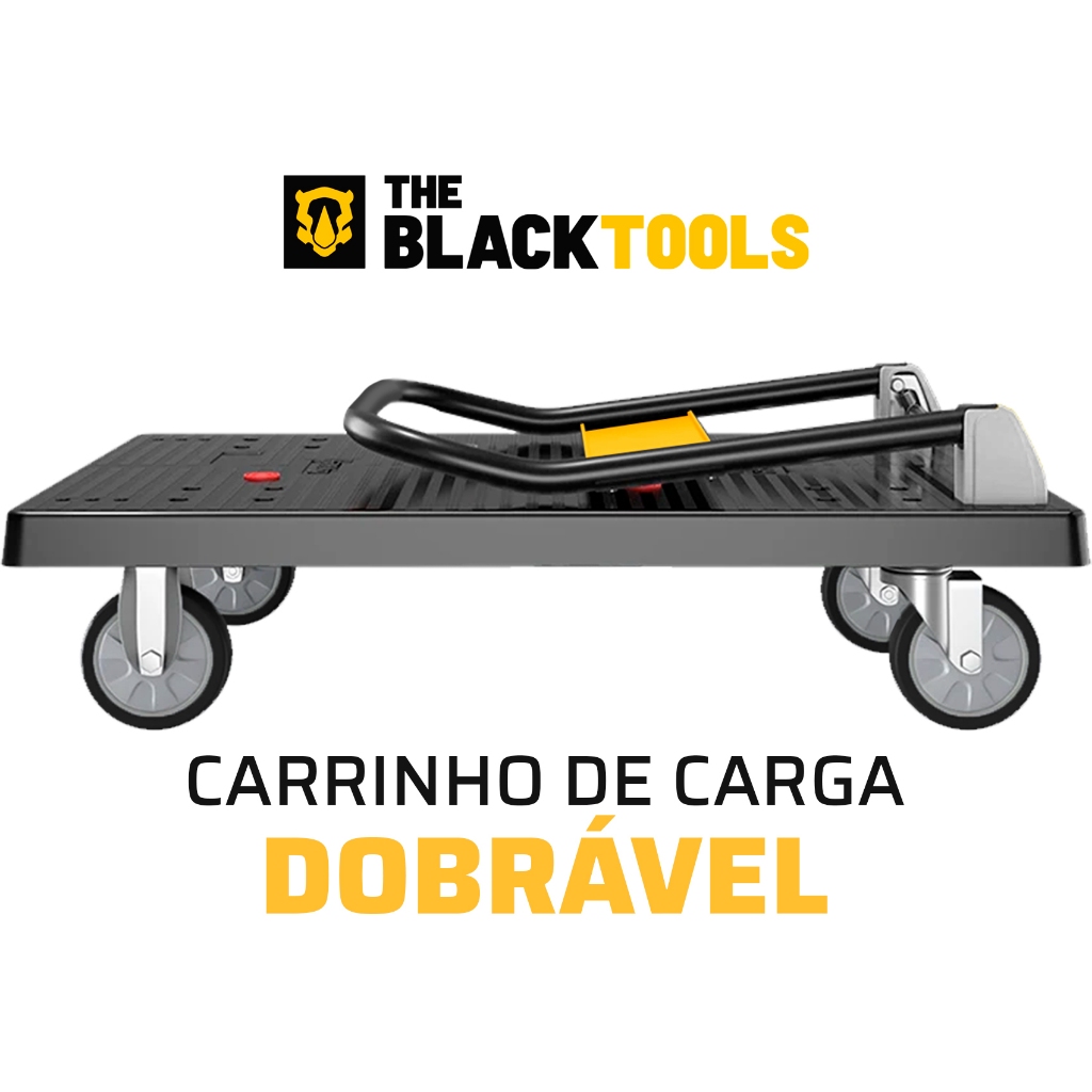 Carrinho De Carga Multiuso Plataforma Aba Dobrável Capacidade 150kg The Black Tools Cor Preto