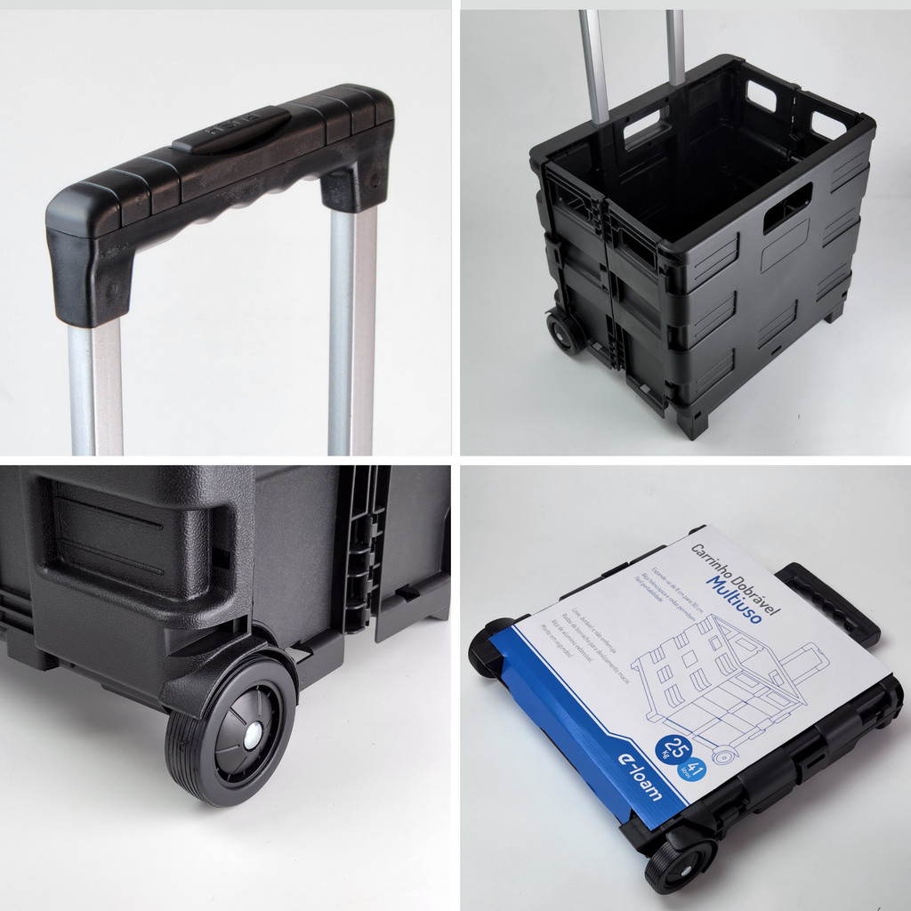 Carrinho de Compras Multiuso Dobrável Suporta 25Kg Guarda Dentro Mala Do Carro