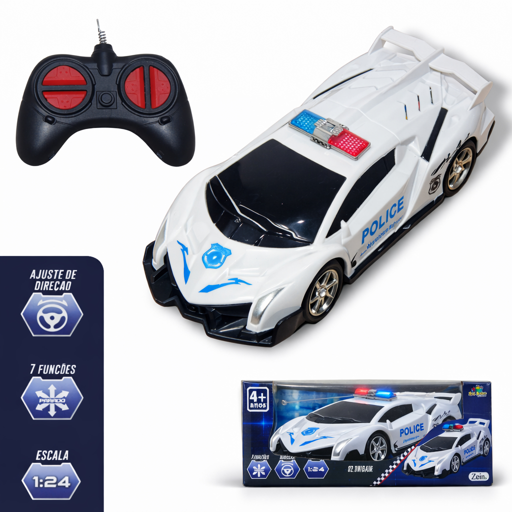 Carrinho de Controle Remoto Brinquedo Super Carro de Policia Carrinho 7 Funções Força Tática