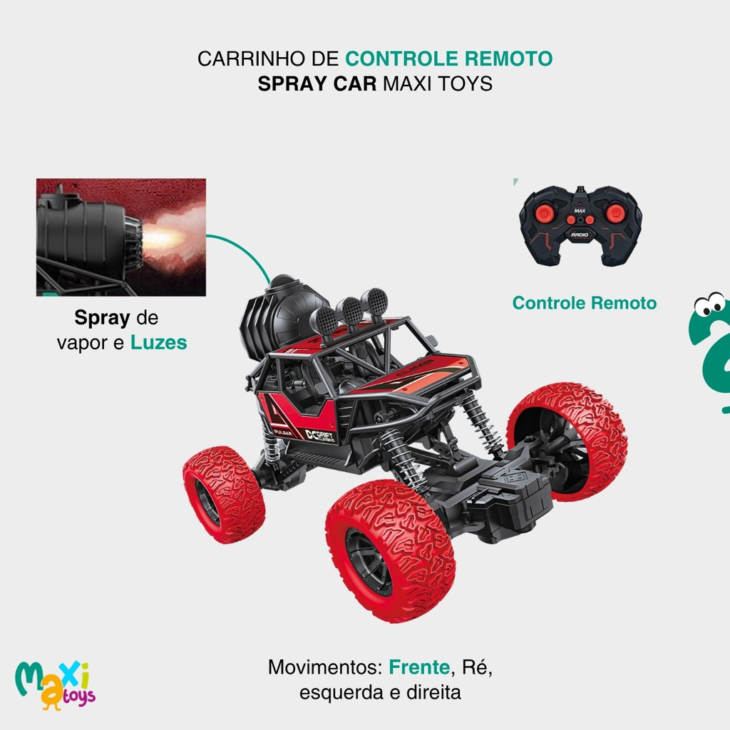 Carrinho de Controle Remoto Infantil SprayCar Verm Maxi Toys