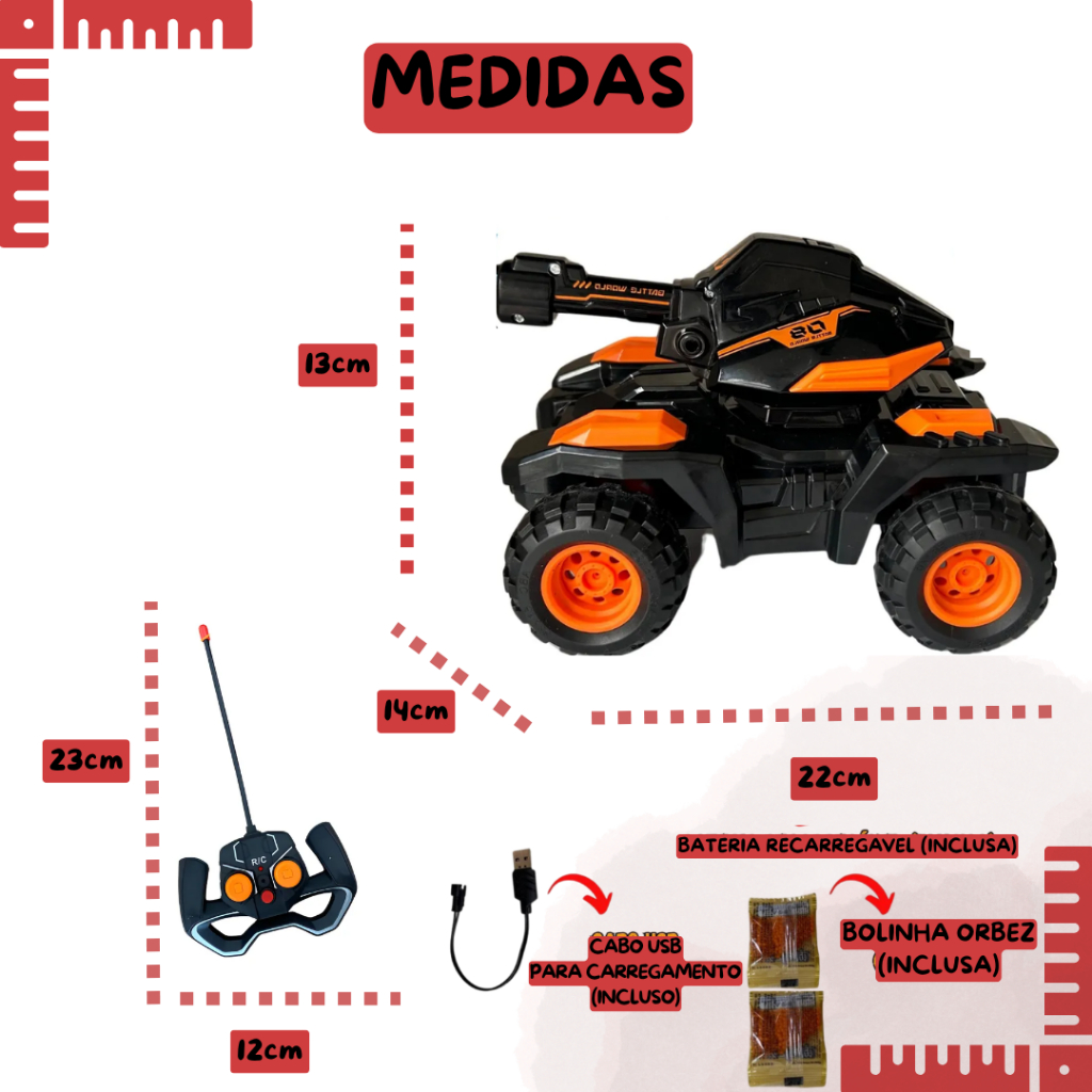 Carrinho de Controle Remoto Tanque de Guerra Lança Bolinhas de Gel e Gira 180º!