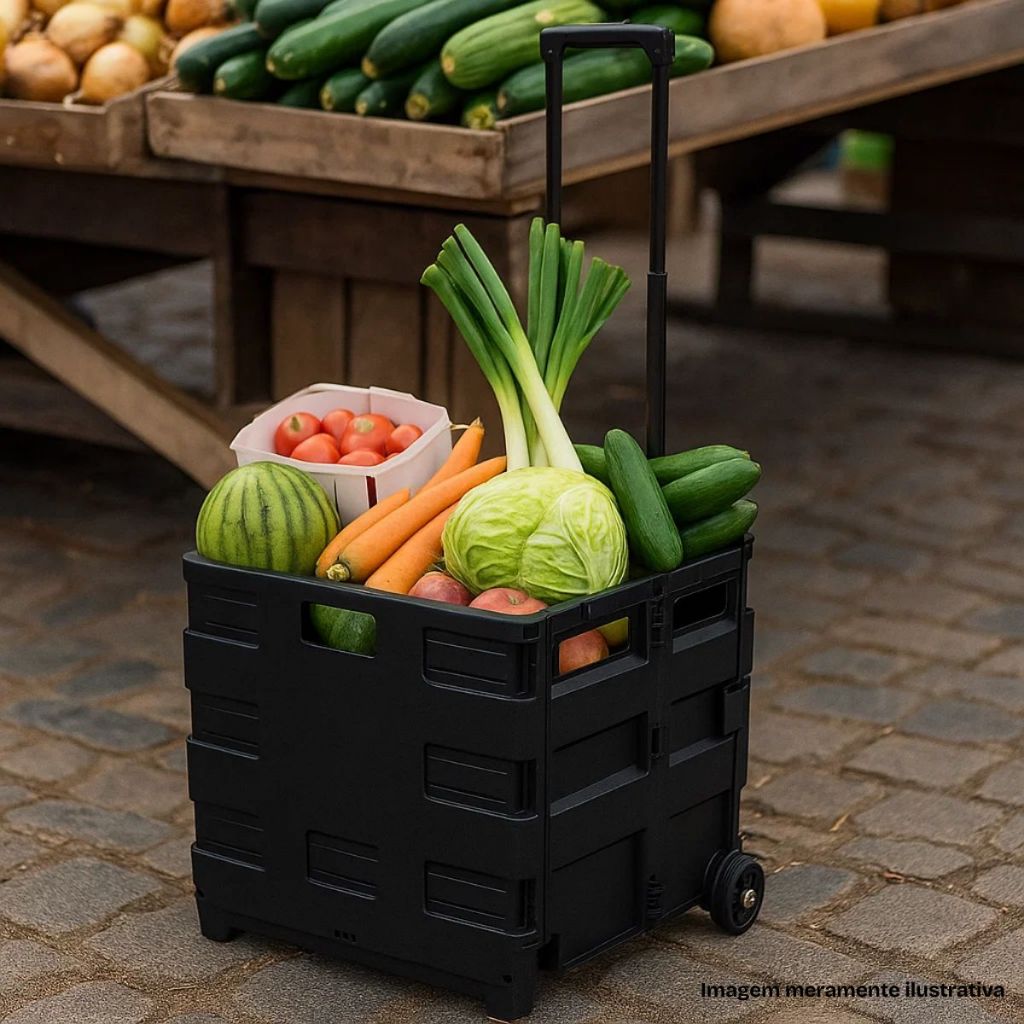 Leve praticidade para o seu dia a dia com o Carrinho de Feira e Mercado Dobrável Multiuso. Ideal para transportar compras, itens de mercado, feiras livres, caixas ou qualquer objeto pesado, ele suporta até 25kg de carga com segurança e eficiência. ✔ Material resistente: estrutura em alumínio de alta durabilidade, alça ajustável e corpo dobrável em plástico rígido. ✔ Fácil de transportar: rodas emborrachadas de 7cm que garantem deslize suave em diferentes superfícies. ✔ Design dobrável e compacto: pode ser guardado em armários, porta-malas, ônibus ou metrô sem ocupar espaço. ✔ Versátil e multiuso: perfeito para mercado, feira, viagens, entregas rápidas e uso doméstico.