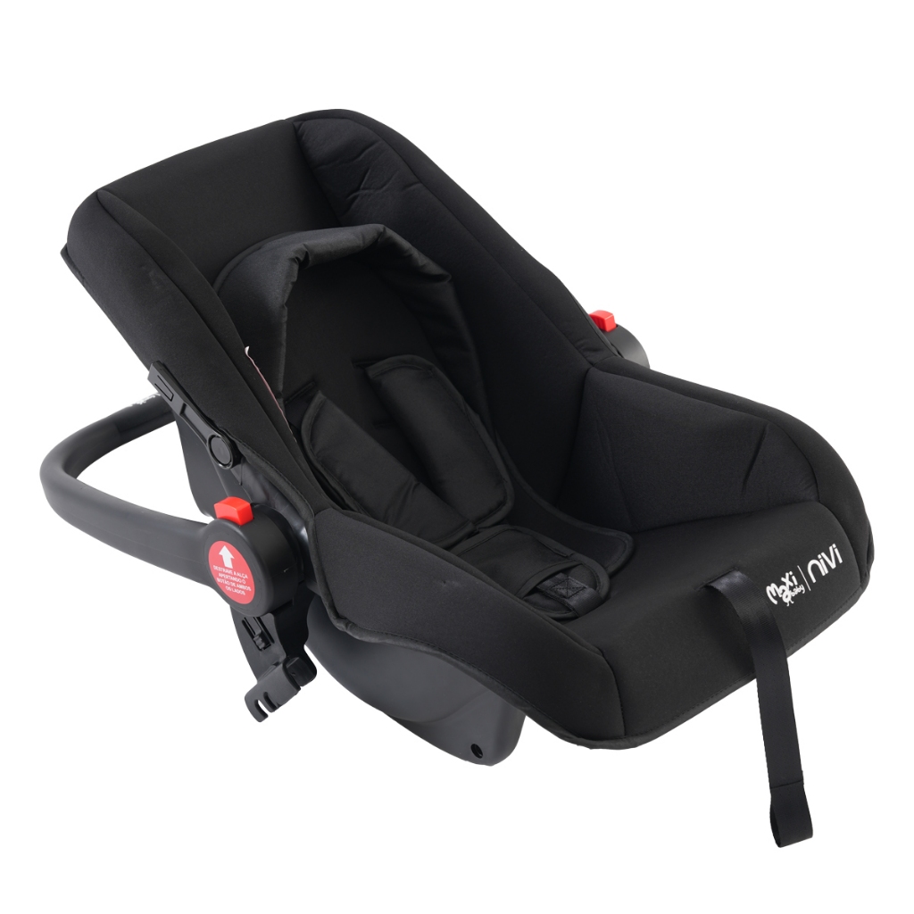 Carrinho Com Bebê Conforto NIVI Travel System Maxi Baby O carrinho Travel System NIVI da Maxi Baby é o aliado perfeito para os pais que procuram conforto, segurança para seus pequenos e praticidade no dia a dia! Ideal para crianças desde o nascimento até 15kgs. Fechamento super prático com apenas uma mão, possui alça que facilita o transporte (fechado fica como uma pequena mala) dando leveza nos passeios, estrutura leve e compacta que cabe em qualquer porta malas e até pode ser levado dentro do avião. Carrinho completo com apoio de pés ajustável, o NIVI vai de totalmente reclinado na posição tipo berço até a posição vertical para quem quer curtir o passeio sentado. Capota retrátil com visor para dar aquela espiadinha no bebê, e bolso frontal para pequenos objetos dos pais, cesto porta-objetos espaço dando mais tranquilidade na hora dos passeios. Manoplas confortáveis para conduzir, possuí visual moderno e cores elegantes, com 4 rodas que proporcionam mais estabilidade nos passeios, freios interligados nas rodas traseiras, rodas frontais giratórias para melhor condução. O bebê conforto, ideal para recém-nascidos do grupo 0+, é fabricado em polipropileno e poliéster, garantindo leveza e resistência. Equipado com capota retrátil e almofada redutora para maior aconchego, oferece sistema de retenção integral com cinto de 5 pontos e fixação segura utilizando o cinto de 3 pontos do veículo. 5 modos de uso: Fixo, balanço, carregar, instalar no carro ou carrinho. Carrinho Travel System NIVI aprovado pelo INMETRO conforme a norma ABNT NBR 14400:2020 para crianças do nascimento aos 15kg. Características Principais: Carrinho - Idade Recomendada: A Partir do Nascimento até 15kg - Travel System - Recline total do encosto tipo berço - Fechamento prático com apenas uma mão - Pode ser levado em avião - Capota retrátil ampla com visor - Visor frontal amplo com bolso para os pais - Cinto de segurança de 5 pontos ajustável - Cesto porta objetos espaçoso - Freio centralizado nas rodas traseiras - Apoio dos pés ajustável - Rodas frontais giratórias com trava - 4 Rodas - Possui alça para transporte - Manopla confortável - Estrutura Leve e compacta - Visual moderno e cores elegantes - Aprovado pelo INMETRO - Disponível nas cores: Preto e Preto com Marron Bebê Conforto: - Idade Recomendada: Do Nascimento até 13kgs - Grupo: 0+ - Instalação: De costas ao Movimento com Cinto de 3 Pontos do Veículo - Redutor de assento: Almofada Acolchoada Removível - Cinto de Segurança de 3 Pontos com Protetores Acolchoados - Cinto de Segurança com Ajuste Central e 2 Alturas - 5 modos de uso: Fixo, balanço, carregar, instalar no carro ou carrinho - Capota Retrátil - Capa Removível e Lavável à Máquina - Certificado pelo INMETRO Especificações Técnicas: - Conteúdo da Embalagem: 1 Carrinho, 1 Bebê Conforto NIVI e 1 manual - Composição/ Material: Aço, PP e Poliéster - Dimensões do Produto Carrinho: (A x L x C): 63,0 x 52,0 x 100 cm - Peso: 6,5kg - Dimensões Bebê Conforto: (A x L x C): 62,0 x 43,0 x 53 cm - 2,5kg - Garantia: 90 dias (Contra defeitos de Fabricação pelo Fabricante) - Certificação Carrinho e Bebê Conforto: 007833/2023 - Ref. Fabricante: 21676 / 21678 - Cód. EAN: 7899403216766 / 7899403216780 - Marca: Maxi Baby  Fotos Ilustrativas - Cores e Modelos podem mudar conforme lote fabricado.