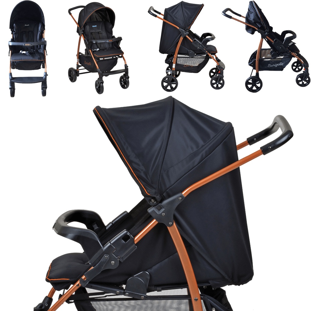 Carrinho de Passeio e Ninho Moises Ecco Preto Cobre - Burigotto