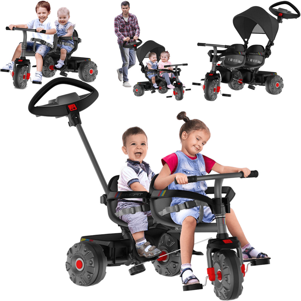 Carrinho de Passeio e Pedal Bandeirante Triciclo Smart Duo 2 Lugares Está procurando um brinquedo incrível para criar memórias inesquecíveis com seus pequenos? A Maçã Verde Baby apresenta o Triciclo Smart Duo da Bandeirante, um triciclo com dois lugares, pensado para oferecer conforto, segurança e muuuita diversão para a criançada! Vale a pena comprar o Triciclo Smart Duo da Bandeirante? O Smart Duo é bom? O Smart Duo é um brinquedo completo, pensado para acompanhar o crescimento das crianças e proporcionar momentos únicos em família. Com dois assentos confortáveis e encosto alto, ele é perfeito para passeios desde os 12 meses, podendo ser utilizado até os 50kg! Seu sistema de roda livre, aro de proteção, apoio para os pés e cinto de segurança oferecem tudo que você precisa para garantir tranquilidade nos trajetos. Durante os passeios, o adulto pode conduzir com facilidade utilizando a haste com suporte para bolsa, enquanto a criança curte cada momento com segurança. Quando chegar a hora da autonomia, é só remover os acessórios e deixar os pequenos explorarem com seus próprios pedais! Design moderno com muito mais funcionalidade Além de funcional, o Smart Duo é super estiloso. Ele conta com capota articulável, rodas com anel de proteção, manoplas confortáveis e uma caçamba traseira para carregar brinquedos ou objetos durante os passeios. Os apoios de pés são removíveis e garantem conforto para os pequenos que ainda não pedalam sozinhos. Esse triciclo 2 em 1 é ideal para famílias que buscam um brinquedo durável, prático e seguro, sem abrir mão de um visual moderno e atrativo. Com certeza vai se tornar o queridinho dos passeios! Cores e modelos disponíveis O Triciclo Smart Duo da Bandeirante está disponível na versão preto e combina com todos os estilos. Um presente perfeito para meninos e meninas! Gostou? Aproveite e garanta já o seu Triciclo Smart Duo da Bandeirante aqui na Maçã Verde Baby! Ficamos no aguardo de sua compra! Neste anúncio especial da Maçã Verde Baby, você vai levar: 1 (um) Triciclo Bandeirante Smart Duo Preto 1 (uma) Haste com suporte para bolsa 2 (dois) Aros de proteção 2 (dois) Pares de apoio para os pés 1 (um) Manual de instruções Quer saber mais detalhes sobre o Triciclo Smart Duo da Bandeirante? Triciclo Passeio e Pedal Bandeirante Smart Duo Idade recomendada: a partir de 12 meses Peso máximo suportado: 50kg Dois assentos com encosto alto Cinto de segurança de 3 pontos Capota articulável, retrátil e removível Cercado de proteção removível com painel de atividades Apoios removíveis para os pés Haste removível com suporte para bolsa Caçamba traseira basculante Freio traseiro de segurança Dispositivo de roda livre Rodas com anel de proteção Manoplas em TPE atóxico Altura máxima recomendada da criança: 1,12m Composição: Polietileno, plástico, metal e borracha Certificado de Registro INMETRO nº 003842/2021 Dimensões: Altura 100,6 cm x Largura 62,5 cm x Comprimento 140,7 cm Peso: 9kg