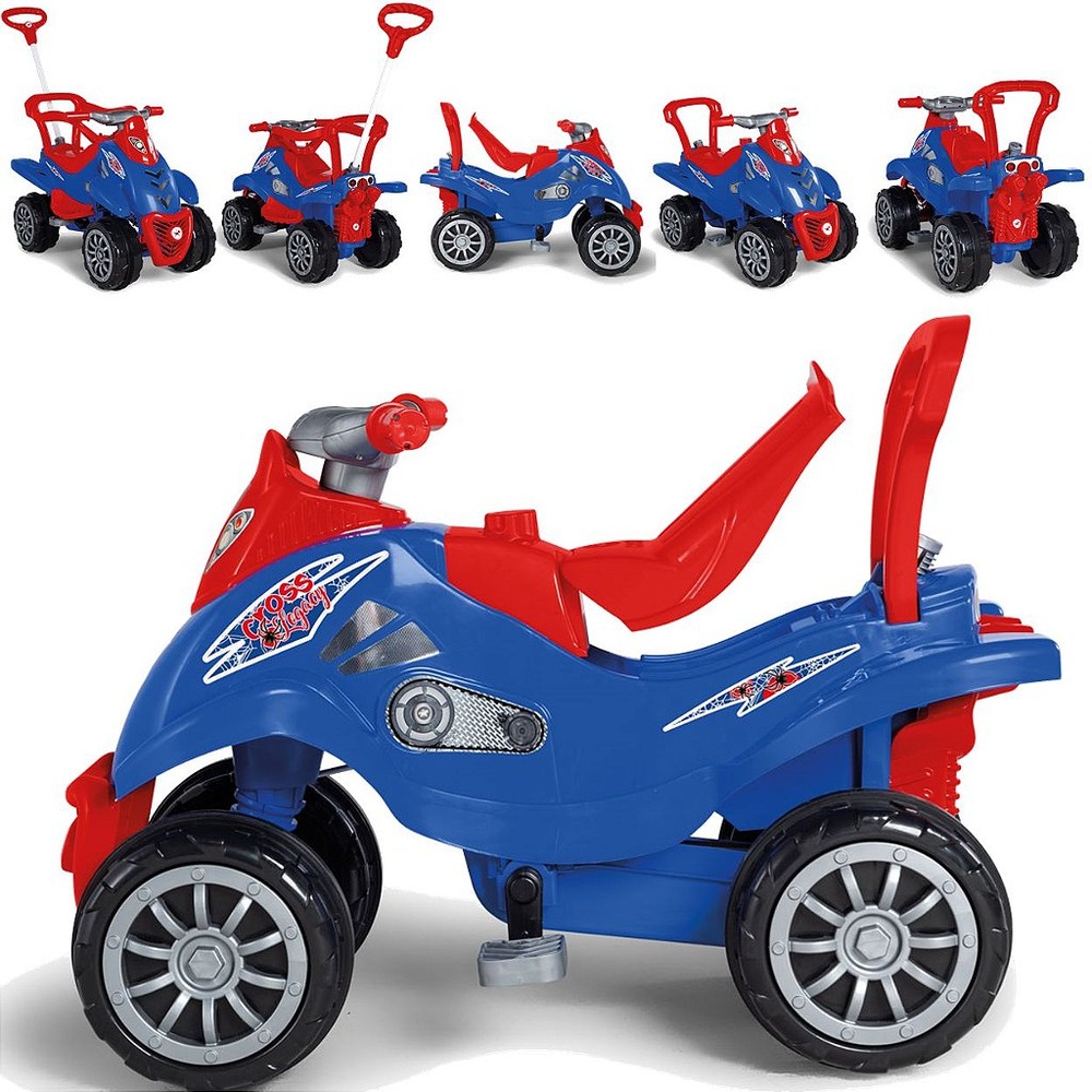 Carrinho de Passeio e Pedal para Bebes Calesita Cross Legacy Está procurando um presente perfeito para seu bebê? O Carrinho de Passeio Pedal Cross Legacy da Calesita vai proporcionar muito conforto e diversão nos passeios do seu bebê! E você vai conhecer TUDO sobre este lindo brinquedo aqui na Maçã Verde Baby! Presente perfeito para bebês de 12 meses até 30kg! Quem não gosta de ganhar um presente, não é verdade? Com a Cross Legacy da Calesita você não vai errar e seu bebê terá um brinquedo que vai durar por muuuito tempo! A Cross Legacy da Calesita é um brinquedo 2 em 1 que acompanha o crescimento do bebê e pode ser utilizado desde os 12 meses de idade até 30kg! Ele pode ser utilizado para passeios ou na função de pedal. Função passeio: Empurrador, proteção e muita diversão a bordo da Cross Legacy Para os bebês de 1 aninho que ainda não conseguem pedalar sozinhos, você pode utilizar a função passeio. O brinquedo possui aro de proteção para evitar que o bebê caia ou se desequilibre no brinquedo. Com o assoalho de proteção. Os pézinhos não vão bater nos pedais e o empurrador vai ajudar você a conduzir o brinquedo durante os passeios. A diversão é garantida para os pequenos! O empurrador do Carrinho de Passeio Cross Legacy da Calesita possui um suporte para carregar a bolsa. Acredite: Isso vai facilitar muito durante os passeios!! Função pedal: As aventuras vão ficar mais divertidas! E quando seu bebê crescer, a Cross Legacy da Calesita poderá ser usada na função pedal, sem o empurrador! A própria criança poderá controlar o brinquedo utilizando os pedais e o volante da Cross Legacy! A Cross Legacy conta ainda com buzina e sons! É Um brinquedo completo, uma ótima escolha que vai marcar a infância do seu bebê! Cores e modelos disponíveis A Cross Legacy da Calesita é muito lindo, não é verdade? Ele tem detalhes incríveis para imitar um veículo off-road, encantando as crianças! O Triciclo de Passeio e Pedal Cross Legacy da Calesita está disponível nas cores Pink e Azul, opções perfeitas para meninas e meninos! A Calesita oferece ainda 90 (noventa) dias de garantia de fábrica para o Carrinho de Passeio e Pedal Cross Legacy. Gostou? Aproveite e garanta agora mesmo o seu Carrinho Passeio e Pedal Cross Legacy da Calesita aqui na Maçã Verde Baby! Ficamos no aguardo de sua compra! Neste anúncio especial da Maçã Verde Baby, você vai levar: - 1 (um) Carrinho de Passeio Pedal Calesita Cross Legacy Azul Quer saber mais detalhes sobre a incrível Cross Legacy de passeio e pedal da Calesita? Carrinho Pedal e Passeio Calesita Cross Legacy 12+ meses Prepare-se! A aventura sobre quatro rodas vai começar! Os pequeninos irão acelerar rumo a diversão com o novo carrinho da Calesita. O Cross Legacy é um quadriciclo dois em um, para passear ou pedalar. Vem com espaço para guardar brinquedos e som divertido para estimular a imaginação. Na versão passeio acompanha o empurrador, aro protetor e apoio de pés removível, fácil de encaixar. E para sair pedalando, basta retirar os acessórios. Então o carrinho está pronto para que os pequeninos explorem o passeio e sintam no rosto o vento com o Cross Legacy. Calesita, brincadeira de verdade. Contém: 1 Cross Legacy 1 Haste/Empurrador 1 Suporte para bolsa 1 Aro Protetor 1 Par de Apoio de Pés 1 Manual de Instruções Habilidades desenvolvidas: Compreensão de causa e efeito, Coordenação entre olhos e pés, Coordenação motora fina – mãos e dedos, Curiosidade e descoberta, Habilidades Sensoriais 2 em 1: Acompanha o crescimento do bebê Função passeio: Empurrador com suporte para bolsa para os pais controlarem o brinquedo. Pode ser instalado com aro de proteção. Função pedal: Basta remover o assoalho, o empurrador e o aro de proteção. A própria criança controlará a direção do brinquedo e os pedais. Passeio: Direção e rodas guiadas pelo empurrador Pedal: Rodas com borracha para não derrapar Espaço para guardar brinquedos Apoio de pé removível Encaixe e desencaixe o empurrador com praticidade Suporte para bolsa Sons e luzes Rodas com borracha Cinto de segurança Farol acende ao acionar o som Idade recomendada: 1 a 3 anos Peso máximo suportado: 30kg Composição: Polietileno, plástico, metal e borracha Medidas da Cross Legacy da Calesita: - Com haste: Altura 80 cm x Largura 40 cm x Comprimento 106 cm - Sem haste: Altura 80 cm x Largura 40 cm x Comprimento 60 cm Peso 6,15 kg Certificado de Registro INMETRO nº 002042/2021 Produto novo, original, lacrado com nota fiscal e certificado de garantia de fábrica válido por 3 (três) meses! Aproveite e garanta agora mesmo o seu aqui Carrinho de Passeio e Pedal para Bebe Calesita Cross Legacy na Maçã Verde Baby! Ficamos no aguardo de sua compra!