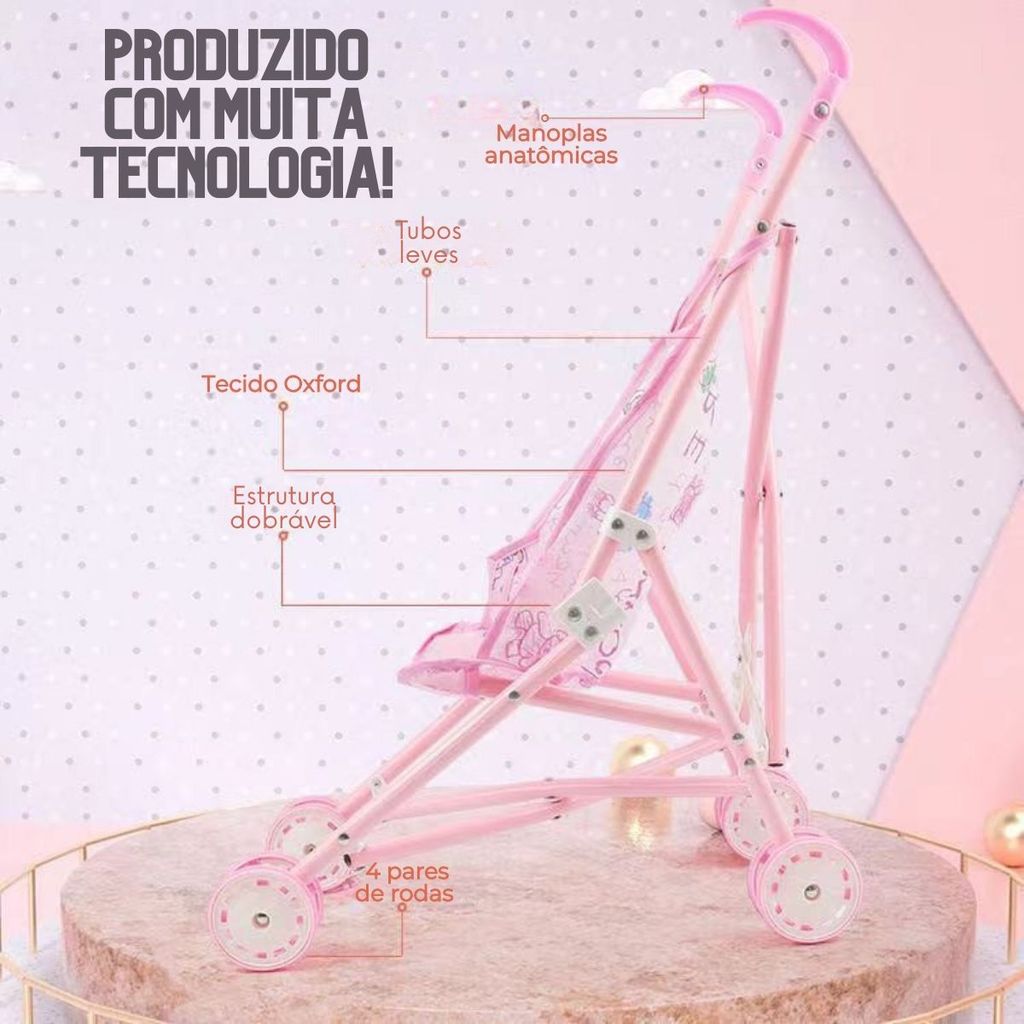 Carrinho de Passeio para Boneca Bebê Reborn Dobrável Estampas Variadas