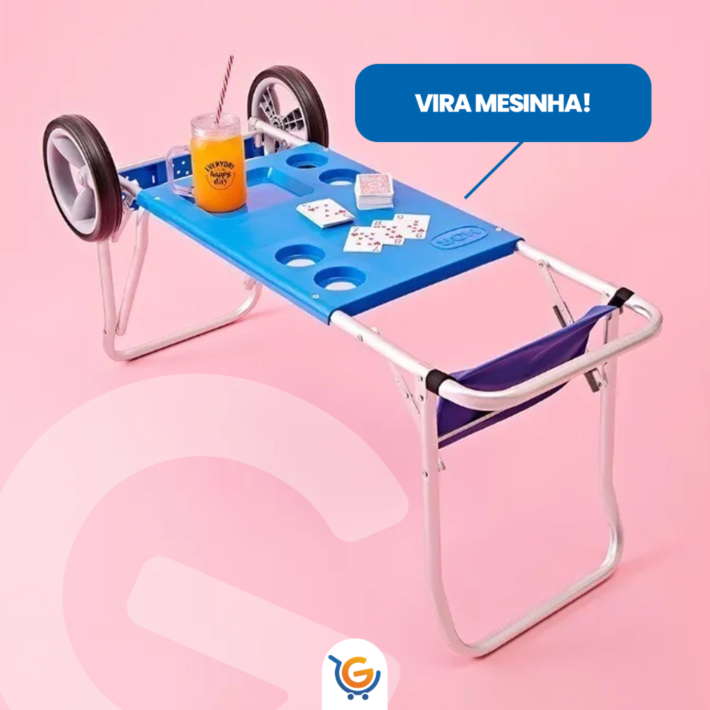 🏖️ Carrinho de Praia com Avanço para Caixa Térmica MOR Desfrute de praticidade e conforto nos seus dias de praia com o Carrinho de Praia MOR com Avanço para Caixa Térmica! Feito para quem gosta de curtir o sol sem abrir mão da organização e da facilidade. 🌞 💪 Resistência e Durabilidade Estrutura em alumínio (inclusive rebites e encaixes), leve e resistente à ferrugem, ideal para o litoral. Suporta até 20 kg distribuídos. 🪣 Capacidade Inteligente Espaço para até 5 cadeiras: ▫️ 5 reclináveis ▫️ 4 reclináveis + 1 alta ▫️ 5 altas ou 5 Master Suporte para guarda-sol, esteira e caixa térmica. Compatível com caixas térmicas de 20L, 26L e 40L. 🎒 Funcional e Versátil Acompanha bolsinha porta-objetos em PVC — perfeita para guardar chaves, óculos e pequenos itens. Inclui 2 elásticos para fixação segura dos objetos. Vira uma mesinha prática! Ao chegar na praia, transforme o carrinho em mesa com 4 encaixes para copos ou latas 🍹 ⚙️ Especificações Dimensões: 84 cm (C) x 49 cm (L) x 1,11 m (A) Peso: 3,3 kg Materiais: ▫️ Estrutura: Alumínio ▫️ Bolsa: PVC ▫️ Rodas: PP com EVA ▫️ Tampo: Polipropileno 📦 Itens Inclusos 1 Carrinho de Praia MOR 1 Bolsinha porta-objetos 2 Elásticos ⚠️ Observação: Anúncio referente apenas ao carrinho. Não acompanha cadeiras nem caixa térmica.