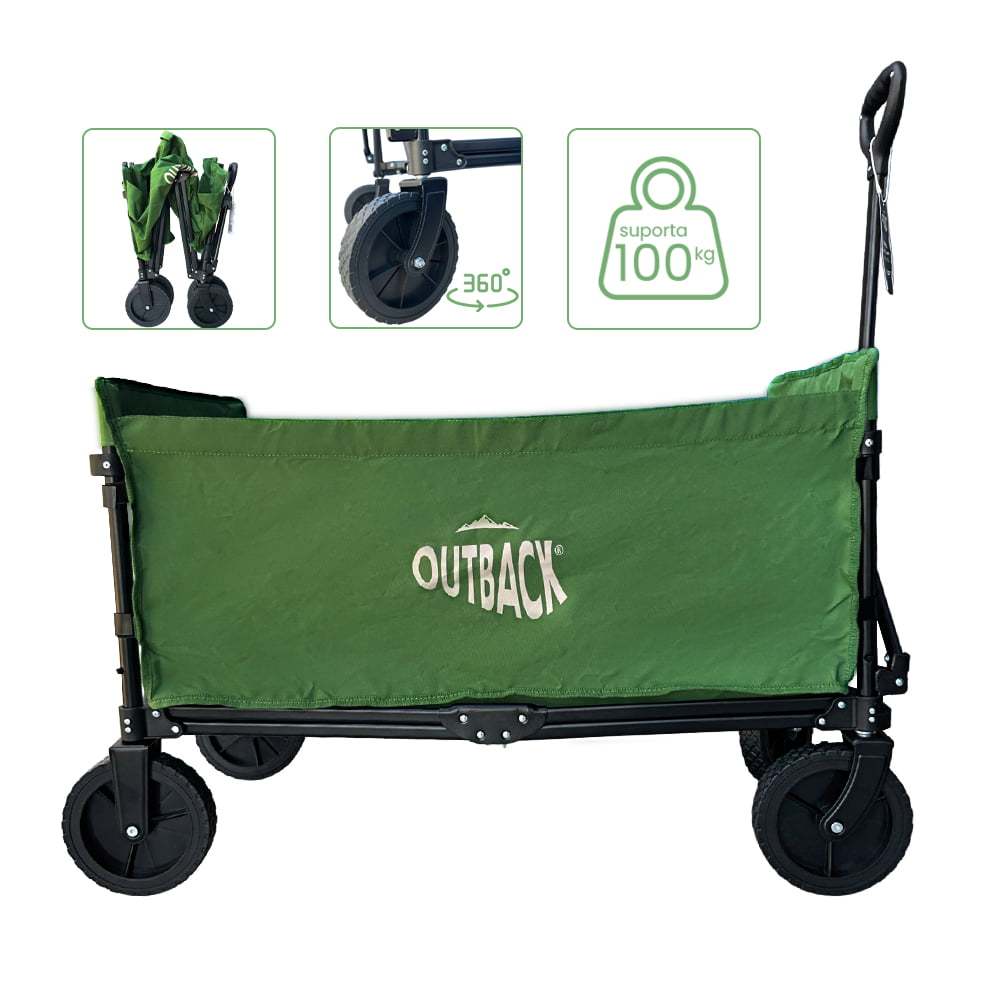 Carrinho Dobrável Camping Praia Multiuso Carga Até 100kg Robusto e Resistente Outback