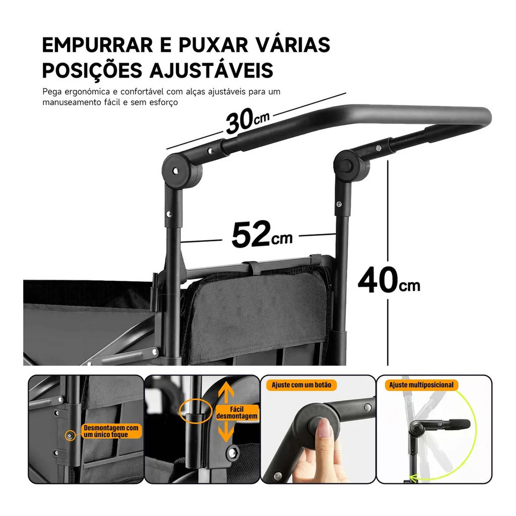 Carrinho Dobrável Transporte Camping Lazer Com Teto Preto