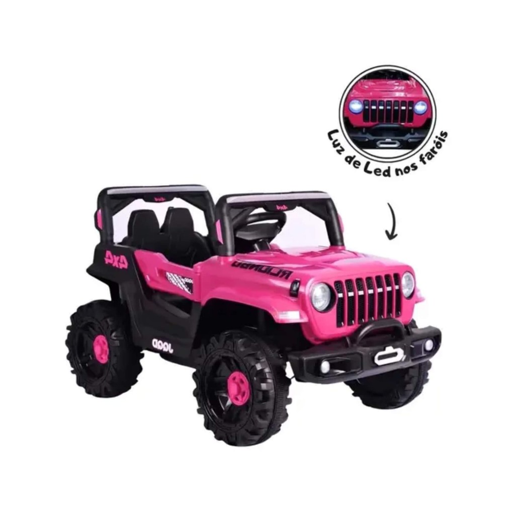 Proporcione uma experiência emocionante para seu pequeno com o Jipe Elétrico Off-Road da Zippy Toys! Imagine seu pequeno pilotando um Jipe em alta velocidade, com o vento no rosto e o ronco do motor ao fundo? Com o Jipe Elétrico Off-Road, o passeio se transformará em uma experiência emocionante, repleta de adrenalina e diversão! Inspirado em um Jipe real, ele possui uma estrutura robusta e estável, com rodas grandes e design de alta performance. Perfeito para os pequenos que adoram explorar a natureza, ele oferece uma pilotagem suave e potente, capaz de enfrentar diferentes tipos de terrenos. Equipado com uma bateria recarregável de 12v, garante longas horas de diversão com apenas uma carga. Fácil de dirigir, ele conta com um pedal único que funciona como aceleração e frenagem, permitindo que as crianças dirijam de forma segura. Seus detalhes encantadores como: painel multifuncional, portas que abrem, faróis em LED, led’s frontais coloridos piscantes e duas marchas (frente e ré) tornam a experiência ainda mais realista e divertida. E o melhor: o som da buzina e o ronco do motor completam a atmosfera de um verdadeiro motorista de Jipe! Principais Características: - Idade Recomendada: A Partir de 3 anos - Peso Máximo Suportado: 30kgs - Possui Botão com 2 Marchas (Frente e Ré) - Botão Liga e Desliga - Possui Painel Multifuncional com Entrada USB - Alto Desempenho e Durabilidade - Pedal Único de Aceleração / Frenagem - Aceleração Gradual e Frenagem Suave - Faróis em LEDs Brilhantes que Acendem - Led’s Frontais Coloridos Piscantes - Bateria Recarregável de 12v - Com Ronco do Motor, Música e Função Ninar - Motor Super Potente - Estrutura e Rodas Robustas - Possui Assento Duplo Confortável - Assento Duplo Confortável com Encosto de Cabeça - Portas que Abrem de Verdade - Acompanha Pá e Controle Remoto Especificações Técnicas: - Conteúdo da Embalagem: 1 Jipe Elétrico Infantil Off-Road Rosa - Zippy Toys - Dimensões do Produto (AxLxP): 61,0 x 56,0 x 96,0 cm - Composição/Material: Plástico e Aço Carbono - Alimentação: Bateria Recarregável 12V / 1Ah - Peso: 21,100kgs - Garantia: 90 dias (Contra Defeitos de Fabricação Pelo Fabricante) - Certificação: 004499/2023 - Código do Fabricante: 10542 Características: - Marca:ZIPPY TOYS - Modelo:10542 *Imagens Meramente Ilustrativas* Conteúdo da Embalagem: - 01x Carro Elétrico Infantil Mini Jipe Off-Road 12V Rosa - 01x Controle Remoto