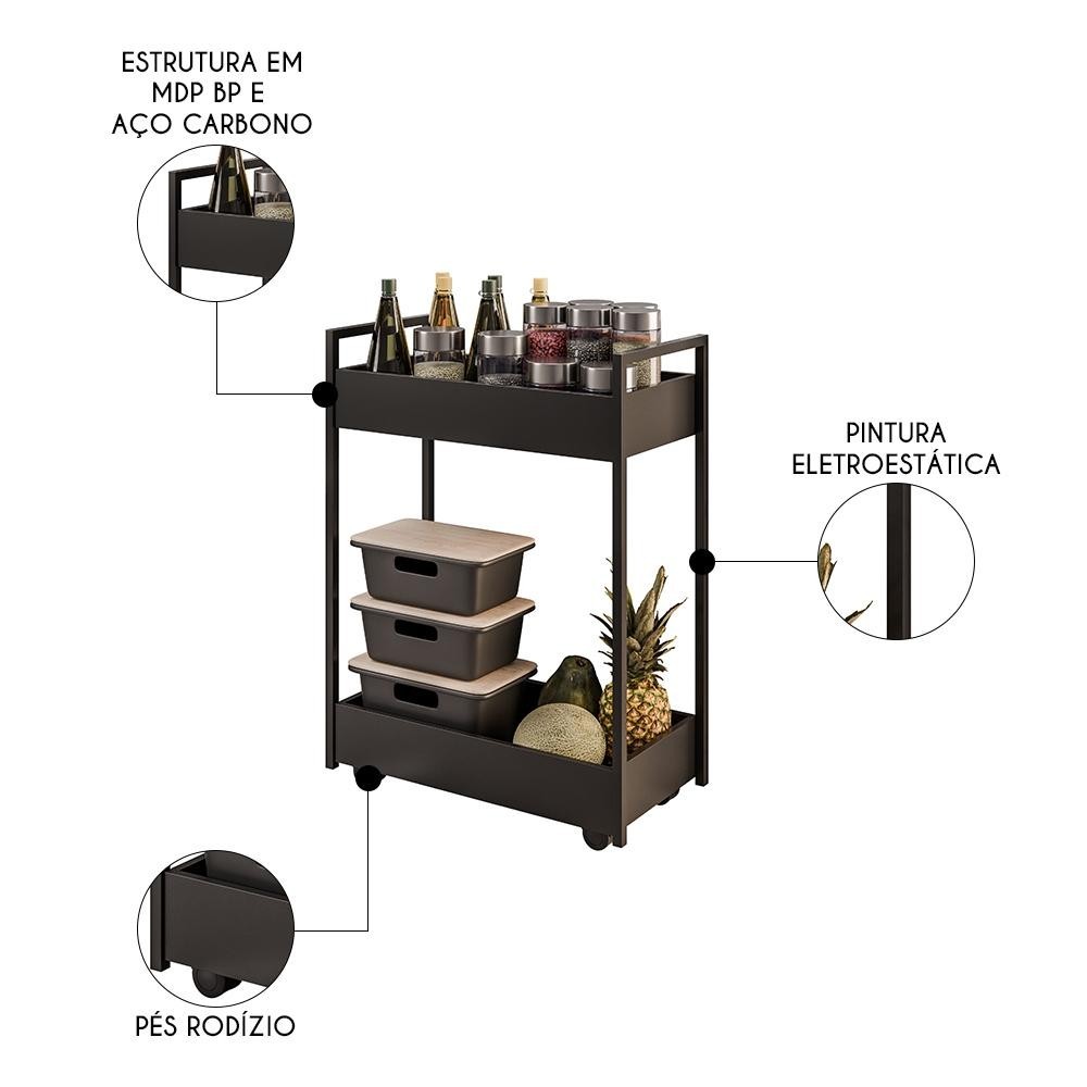 Carrinho Gourmet de Apoio Industrial 2 Prateleiras Sara Z34 Preto - Mpozenato