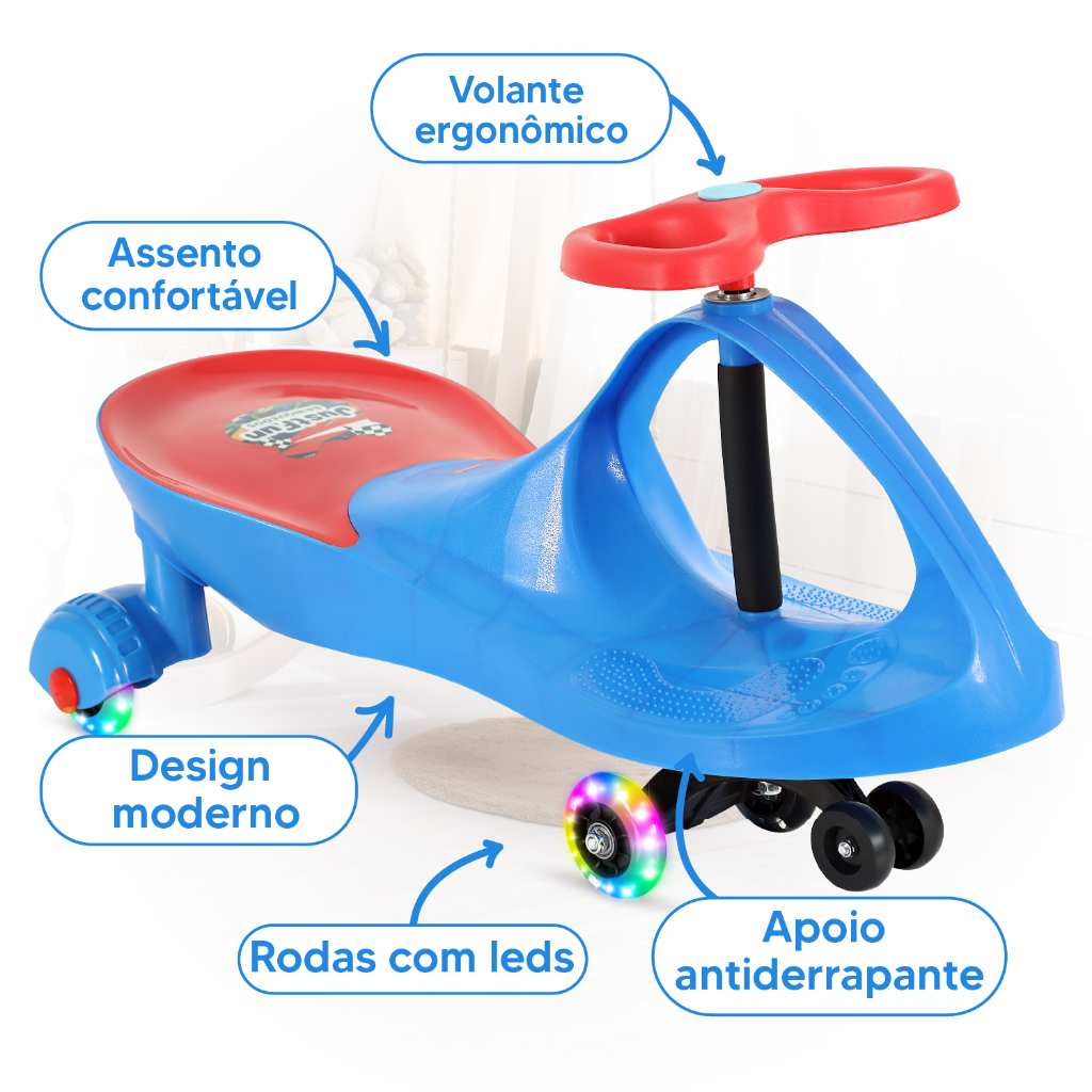 Carrinho Infantil Rolimã Triciclo Roda Led Gira Volante 360° Suporta 100kg Rosa, Azul ou Vemelho