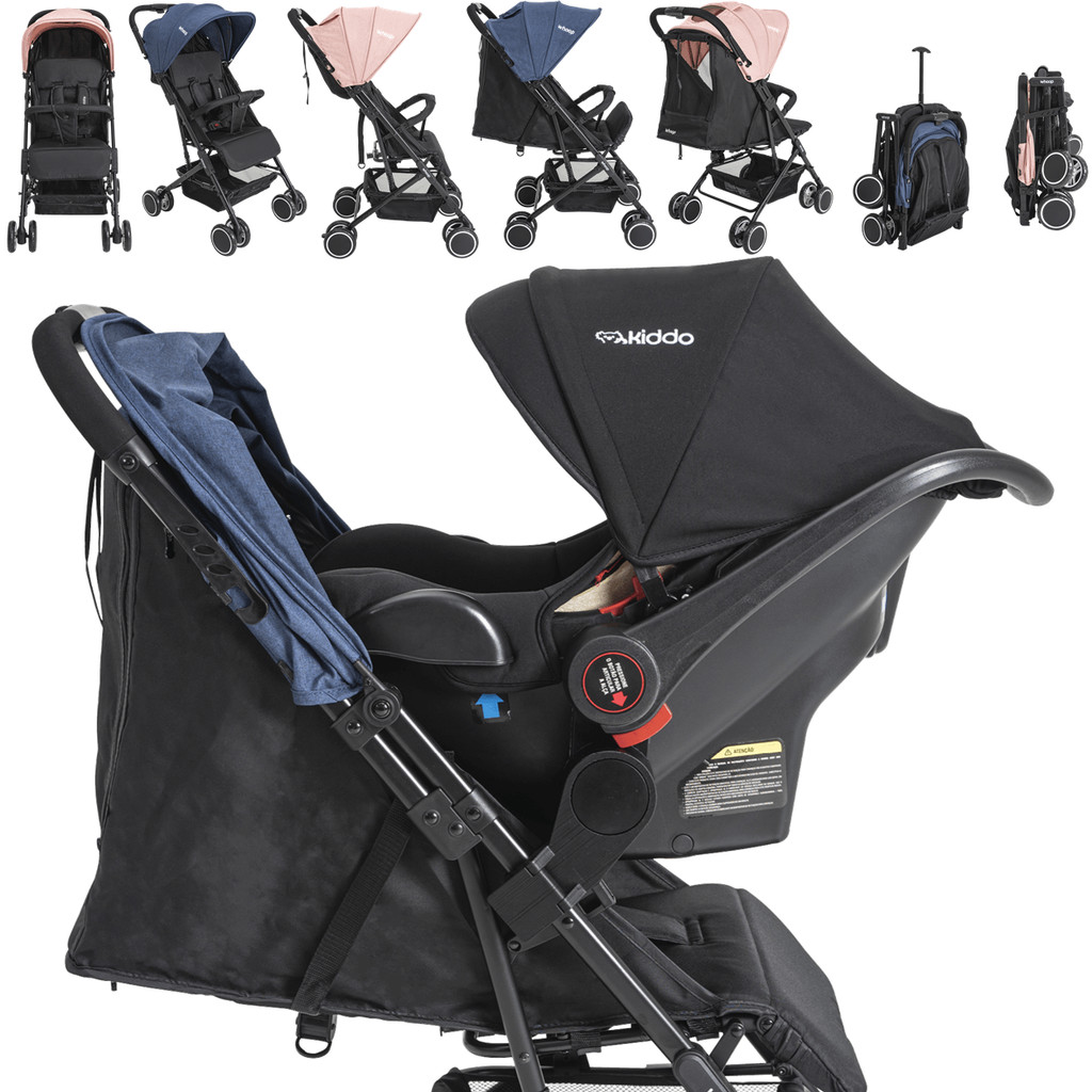 Carrinho Kiddo Gemeos 2 Bebe Conforto Colinho 2 Base ISOFIX Mascote Casal
