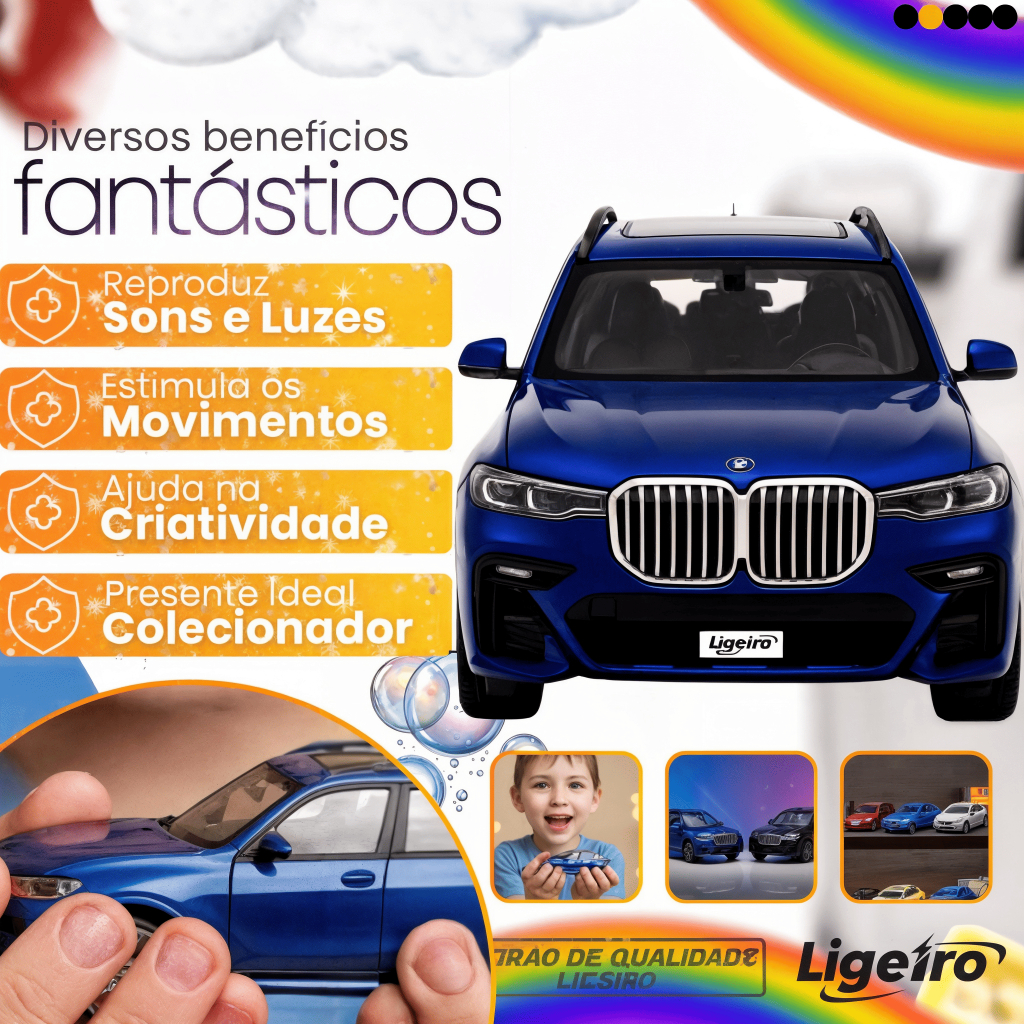 MINIATURA BMW X5 – ESCALA 1:36 REALISMO, QUALIDADE E DIVERSÃO EM CADA DETALHE ________________________________________________ PRONTA ENTREGA + ENVIO IMEDIATO Envio rápido e seguro Produto testado antes do envio Garantia e nota fiscal Atendimento 24h no campo de perguntas Compra 100% segura com loja confiável ________________________________________________ DESTAQUES DO PRODUTO: • Detalhes realistas – réplica fiel da BMW X5, ideal para colecionadores e apaixonados por carros. • Portas laterais & Porta Malas que abrem – interior rico em detalhes para maior imersão e realismo. • Sistema de fricção – basta puxar para trás e soltar para o carrinho se movimentar suavemente. • Pneus de borracha – maior durabilidade e acabamento premium. • Estrutura em metal (ferro) – resistente, robusta e de alta qualidade. • Perfeita para brincar ou colecionar – une diversão infantil e valor para colecionadores. ________________________________________________ CORES DISPONÍVEIS: Preto – moderno e versátil Azul– clean e atemporal (Selecione a cor desejada no momento da compra) ________________________________________________ ESPECIFICAÇÕES TÉCNICAS: Modelo: BMW X5 Escala 1:36 Material: Metal (ferro) + pneus de borracha Dimensões: Altura: 5 cm Comprimento: 12 cm Largura: 4 cm Funções: Portas & Porta Malas que abrem e sistema de fricção Indicação: Colecionadores, presente e diversão infantil ________________________________________________ ITENS INCLUSOS: 1x Miniatura BMW X5 – Escala 1:36 ESTOQUE LIMITADO. Ideal para presentear ou elevar o nível da sua coleção com uma miniatura que combina design, realismo e funcionalidade. ________________________________________________ Dúvidas? Estamos à disposição no campo de perguntas. Att, YUTA.