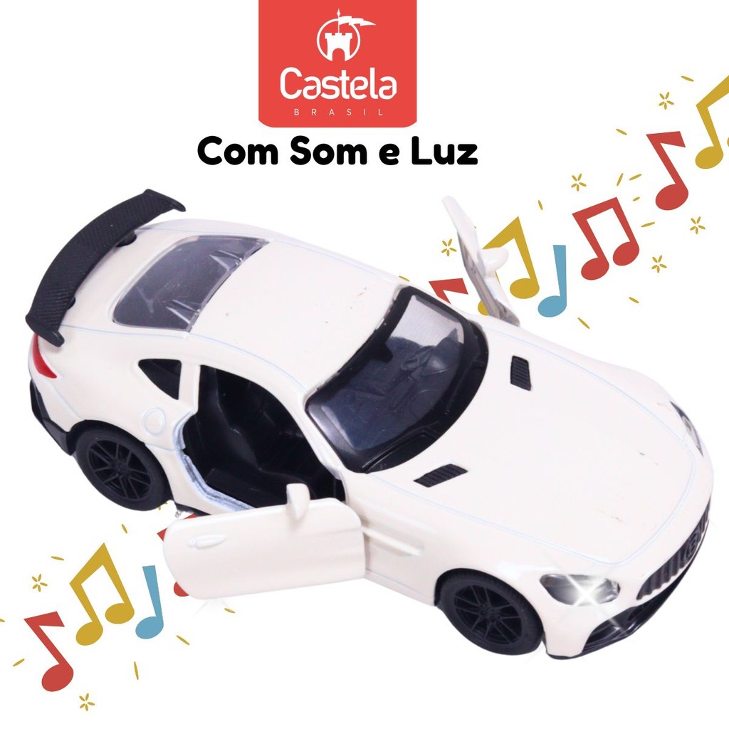 Carrinho Miniatura Branco Pull Back 1:32 C/ Som e Luz - Castela